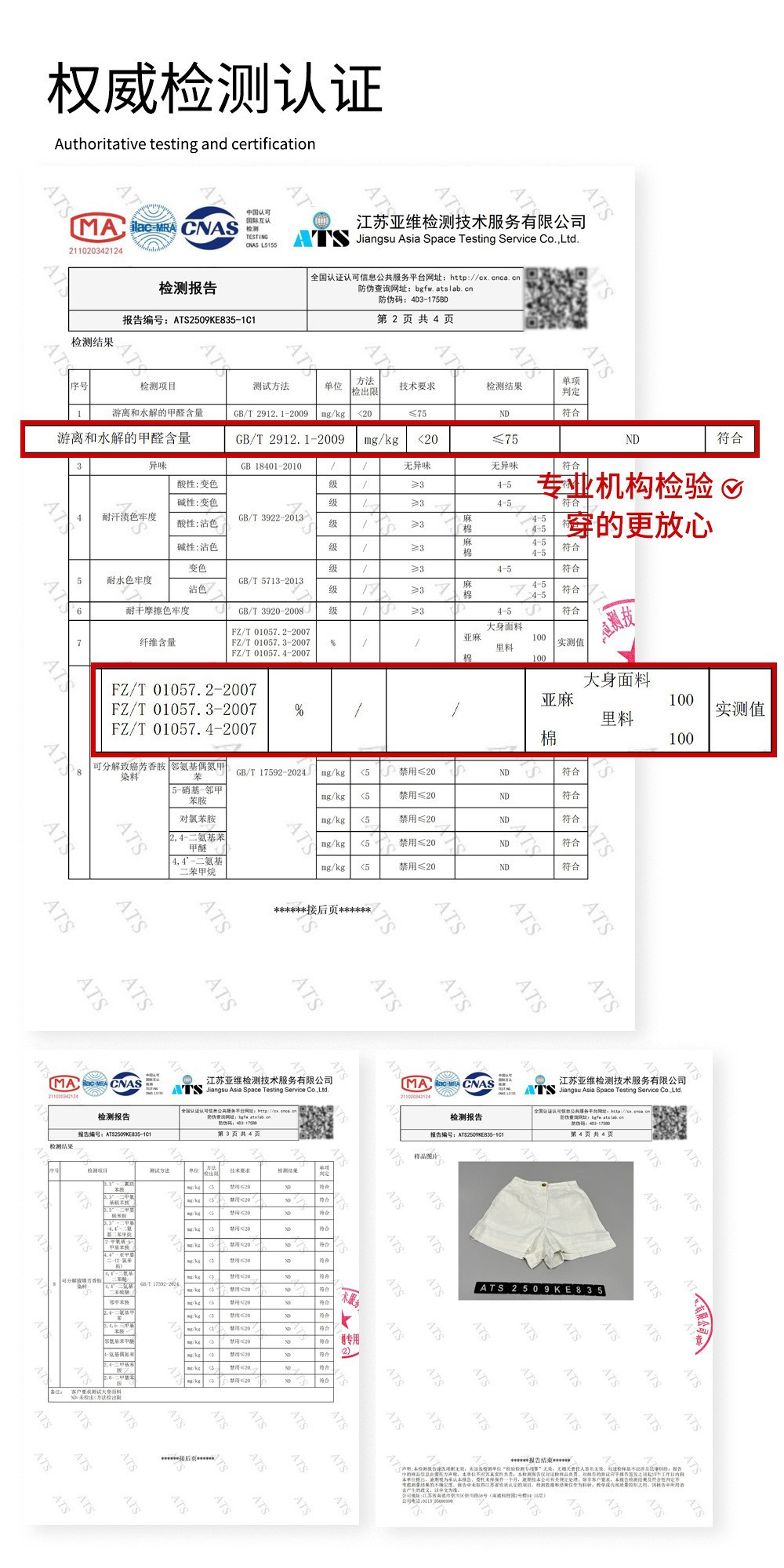 • 권위 있는 테스트 및 인증, 100% 린넨