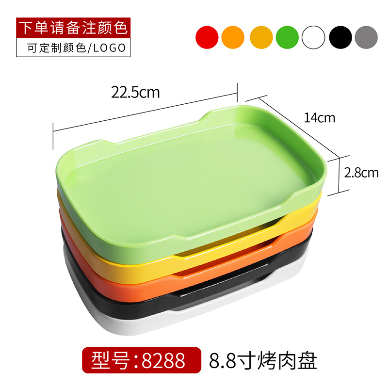 레스토랑 냄비 접시 멜라민 사각 접시 상업 도매 로스트 샵 접시 식기 색상 모조 도자기 접시스토어 가기