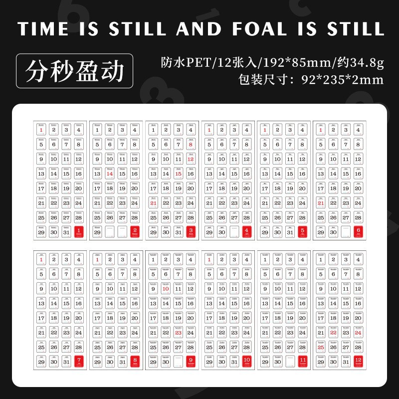 Yuezhen 신제품 365 일 지불 손 계정 노트북 배경 장식 스티커 자체 접착 달력 12