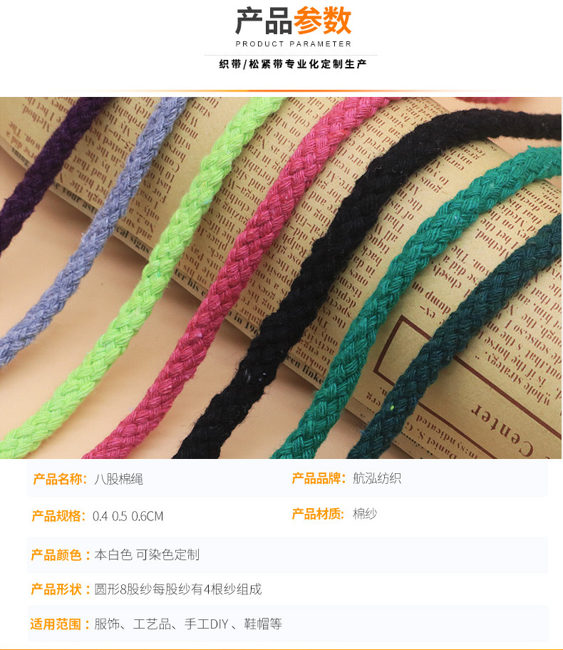이 흰색 8 가닥면 로프 라운드 로프 제조 업체 drawstring 코트 모자 바지 허리 모자 로프 재고 장난감 애완 동물 8 가닥 로프스토어 가기