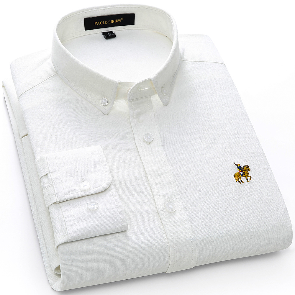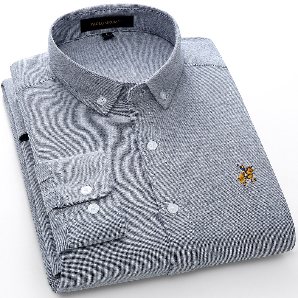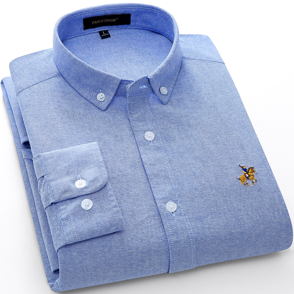 아마존 대외 무역 유럽 사이즈 면 옥스포드 남자의 긴 소매 단색 셔츠 크로스 보더 플러스 사이즈 면 자수 셔츠스토어 가기