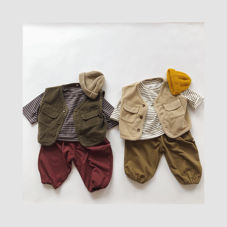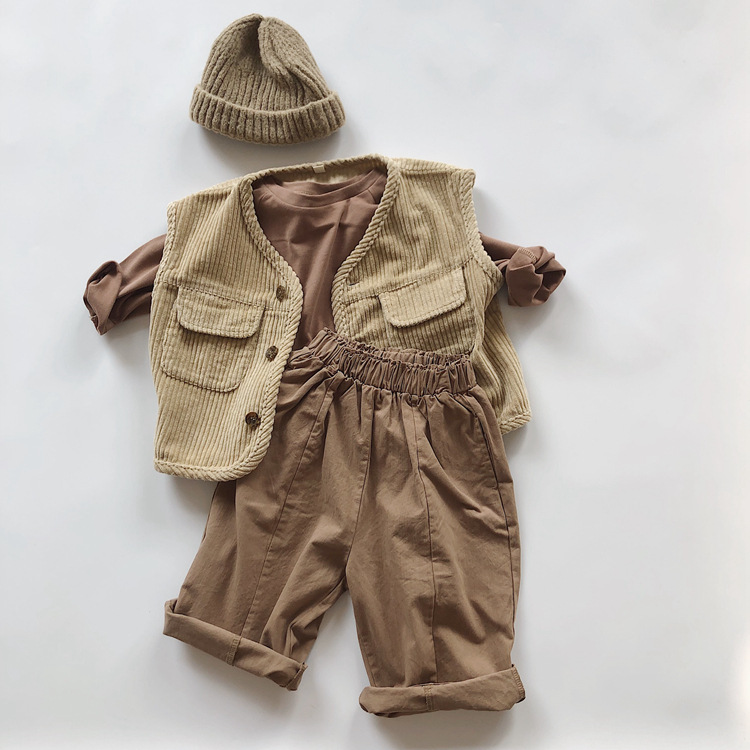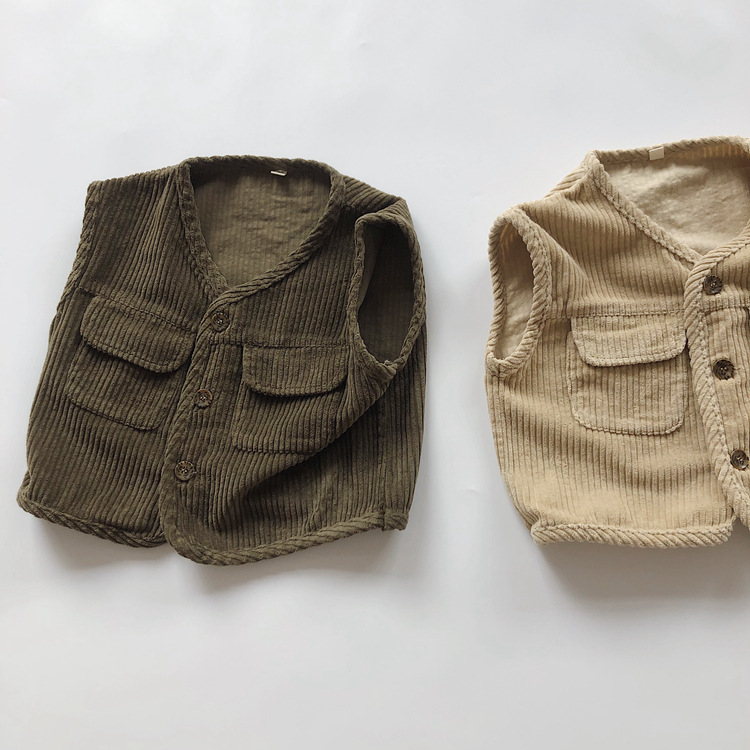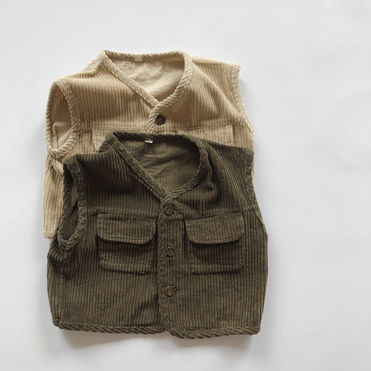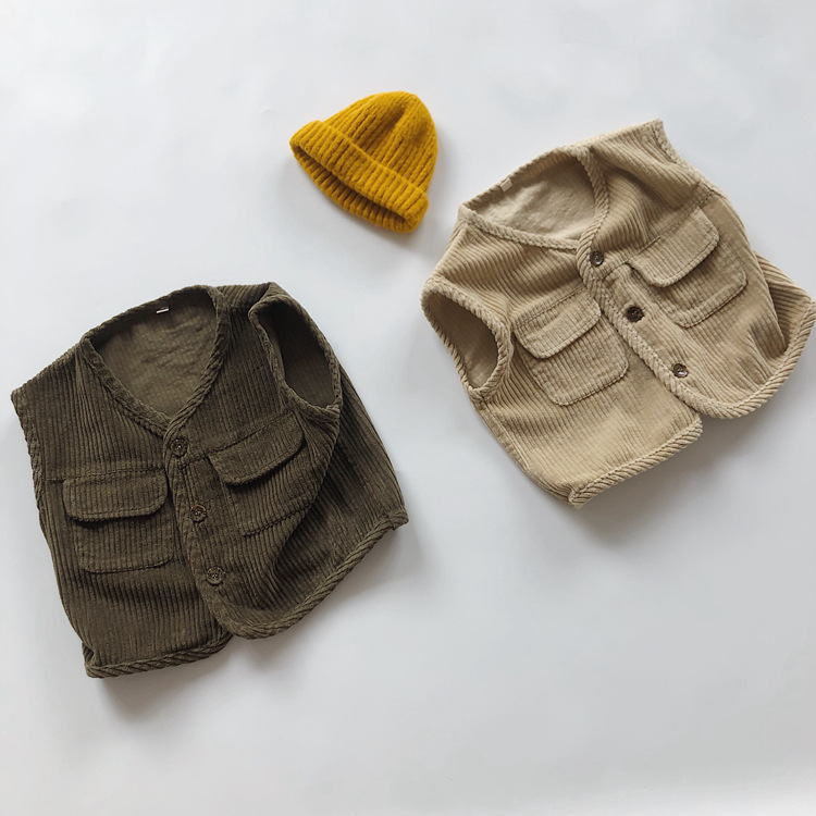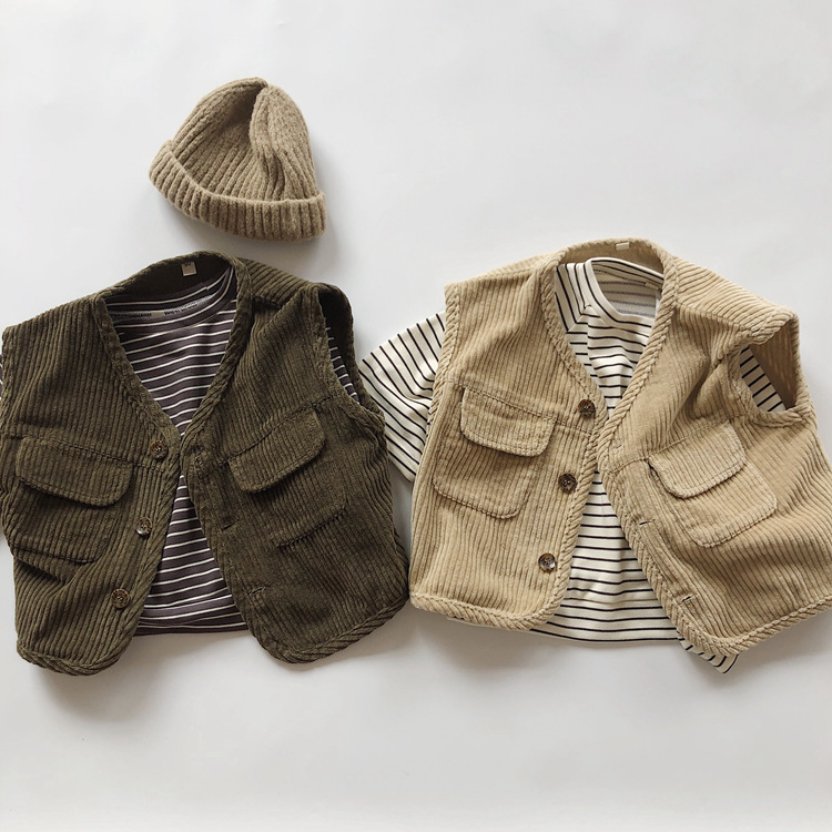 어린이 조끼 어깨 조끼 봄과 가을 새로운 한국 일본 스타일 코듀로이 조끼 민소매 조끼 소년 소녀 코듀로이 조끼