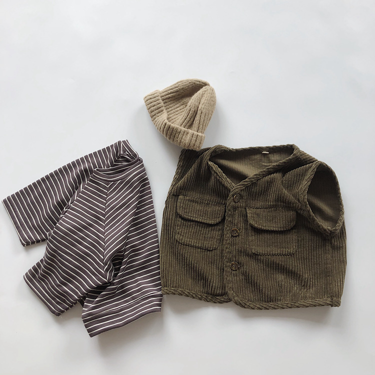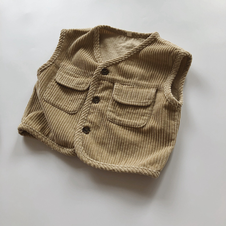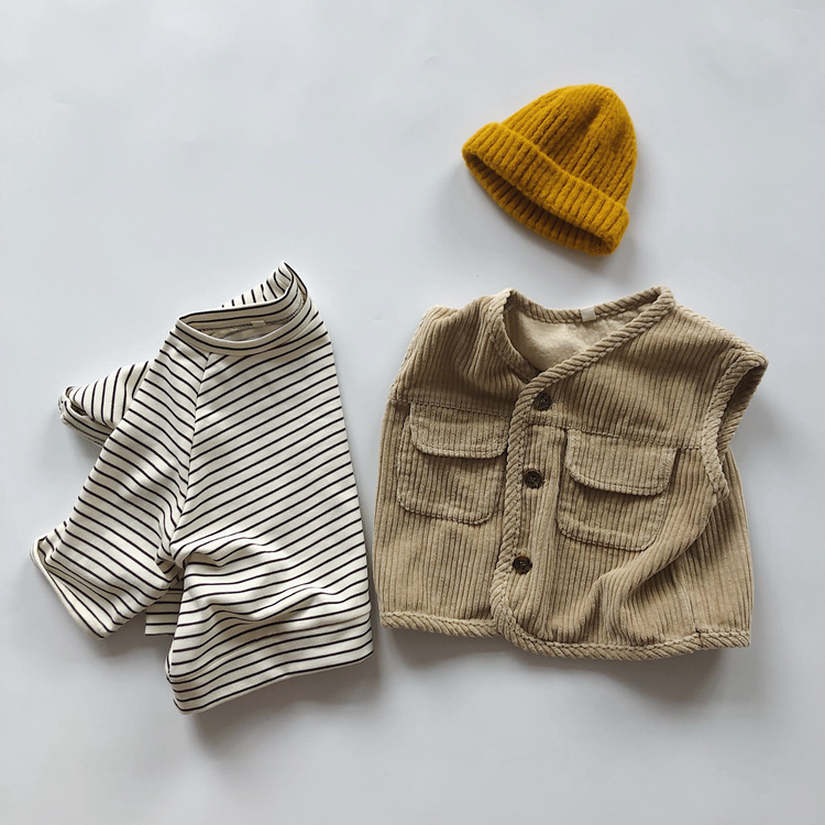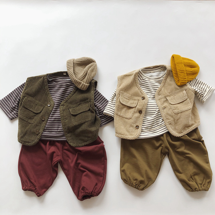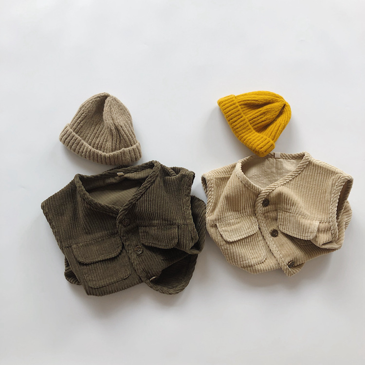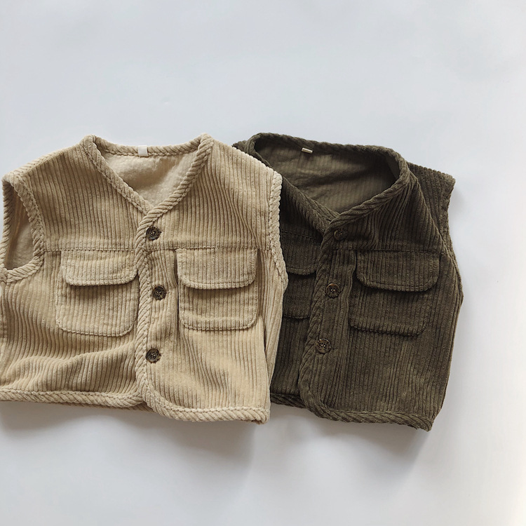 어린이 조끼 어깨 조끼 봄과 가을 새로운 한국 일본 스타일 코듀로이 조끼 민소매 조끼 소년 소녀 코듀로이 조끼