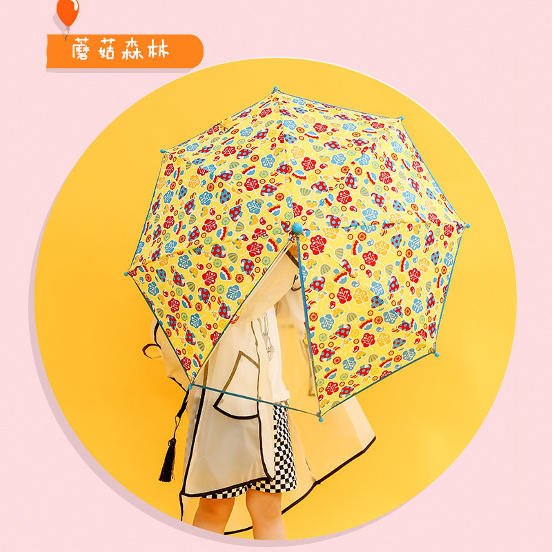 어린이 우산 안전 만화 태양 보호 차양 창조적 인 투명 비 이중 사용 긴 손잡이 유치원 아기 우산