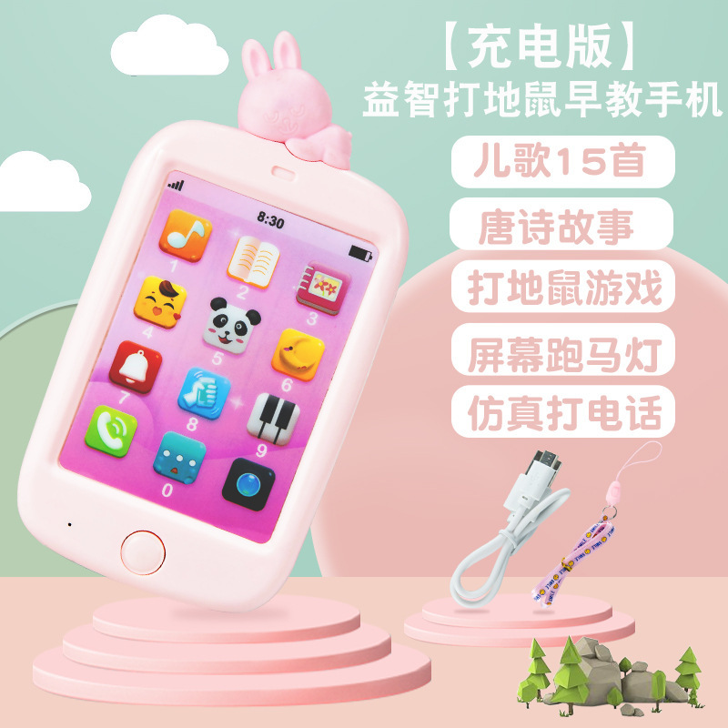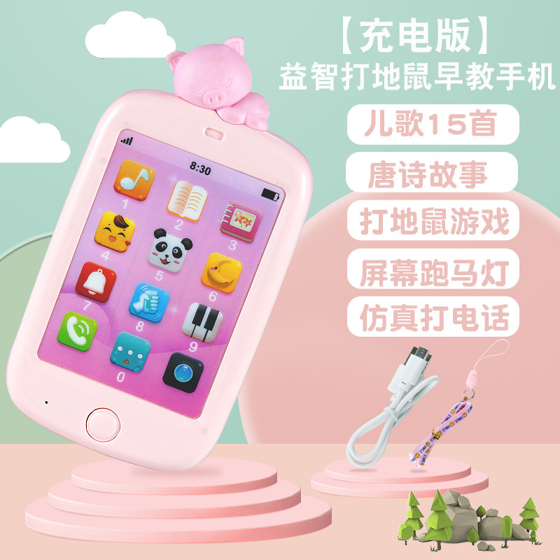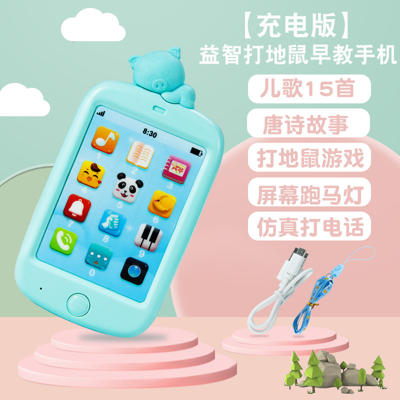 유아 아기 전화 장난감 부드러운 고무 어린이 음악 터치 스크린 조기 교육 퍼즐 0-3 세 충전을 물릴 수 있습니다