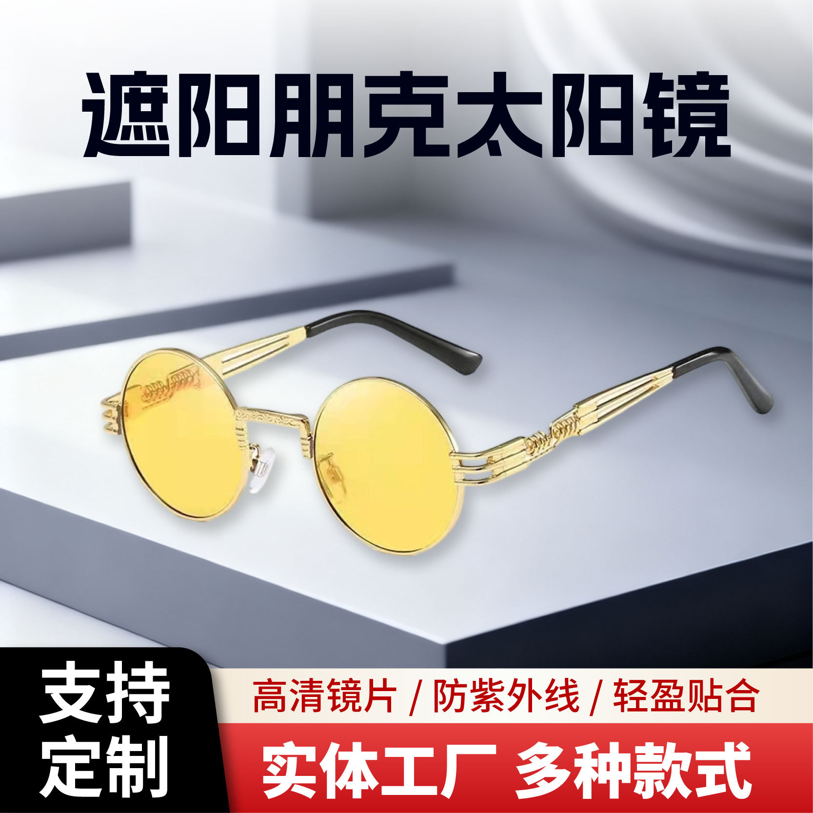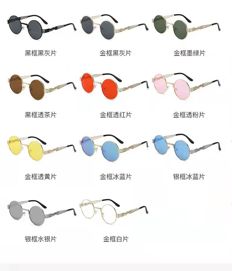 국경 간 폭발 새로운 빈티지 스팀 펑크 원형 프레임 금속 봄 다리 선글라스 여성 차양 펑크 선글라스스토어 가기