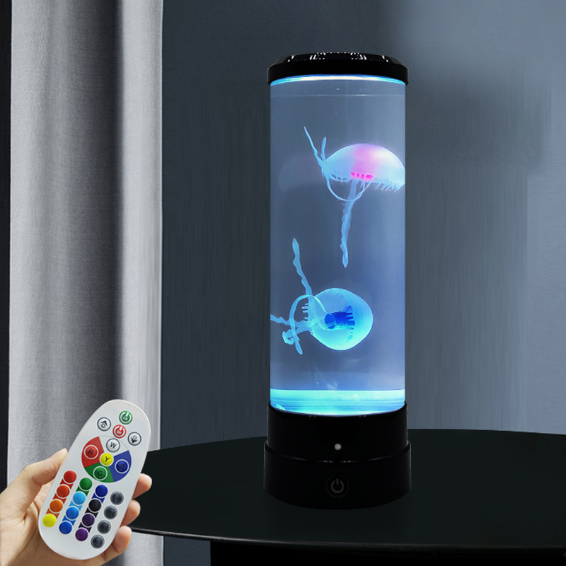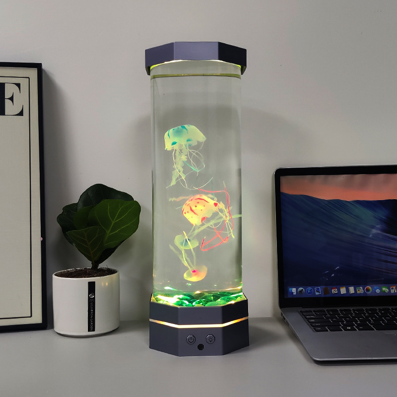4、将水母的触须平整后,放入水中,盖上盖子。打开开关即可。