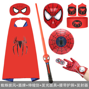 万圣节儿童服装cosplay套装蜘蛛侠披风盾牌发光面具儿童节衣服装