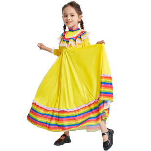 传统墨西哥女孩裙子大裙摆民族风格连衣裙舞蹈服装万圣六一儿童节