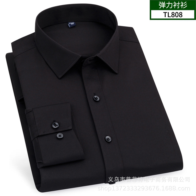 스트레치 셔츠 남성용 긴팔 비즈니스 슬림핏 원피스 전문 셔츠 주름 방지 비 다림질 단색 작업 원피스