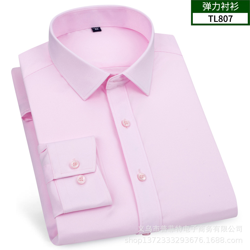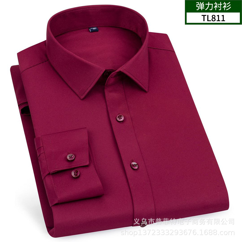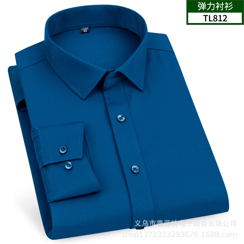 스트레치 셔츠 남성용 긴팔 비즈니스 슬림핏 원피스 전문 셔츠 주름 방지 비 다림질 단색 작업 원피스스토어 가기