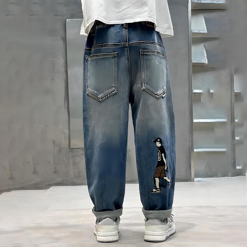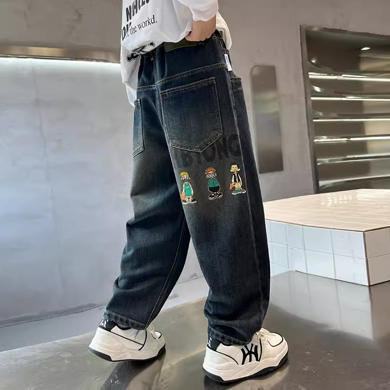 남아용 바지, 봄, 가을 신상품, 아동용 다용도 데님 바지, 패셔너블한 남아용 멋진 루즈 버전 아빠 청바지스토어 가기