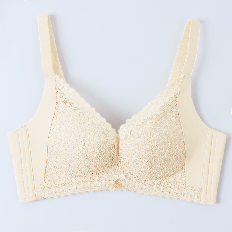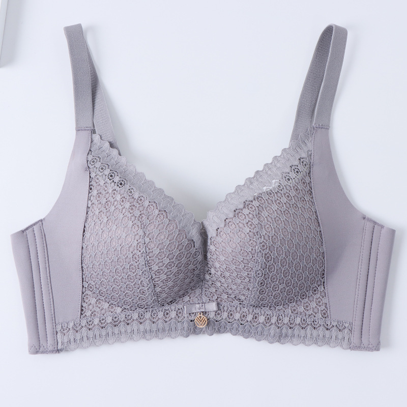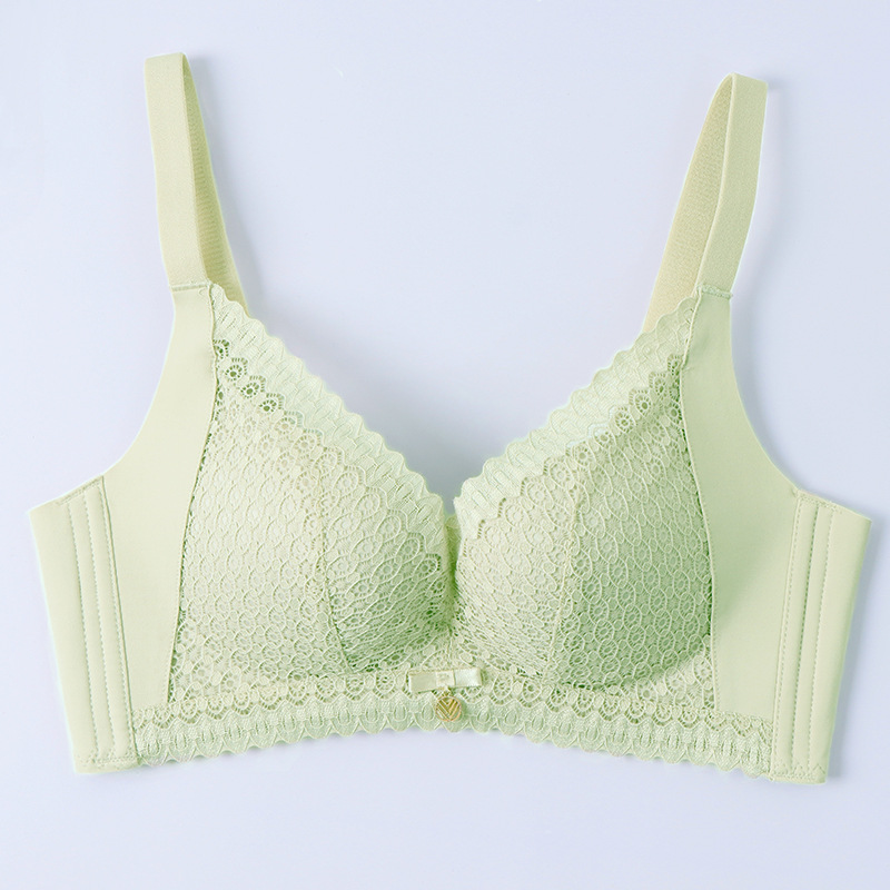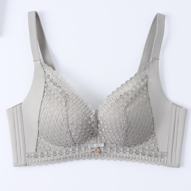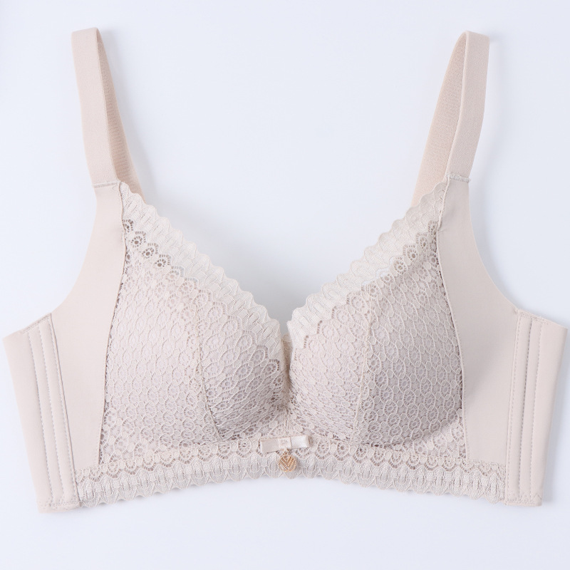 작은 가슴용 얇은 푸쉬업 조절형 노와이어 브라, 옆가슴 모아주는 통기성 여성 브라, 크로스보더 레이스