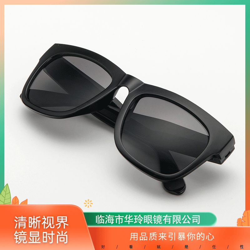 새로운 선글라스 패션 스퀘어 대형 프레임 선글라스 남성과 여성 블랙 심플 패션 라이딩 차양 안경