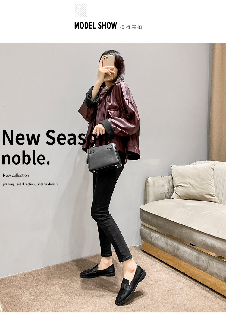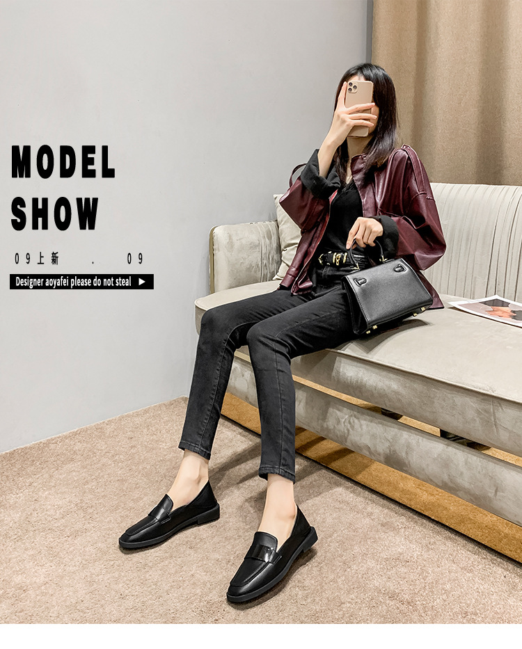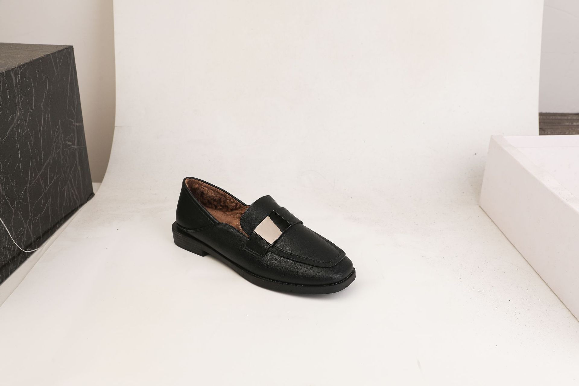 2024 패션 레푸 플러스 벨벳 작은 가죽 신발 여성 1 피트 대형 싱글 신발 영국 스타일 우유 신발 988-56