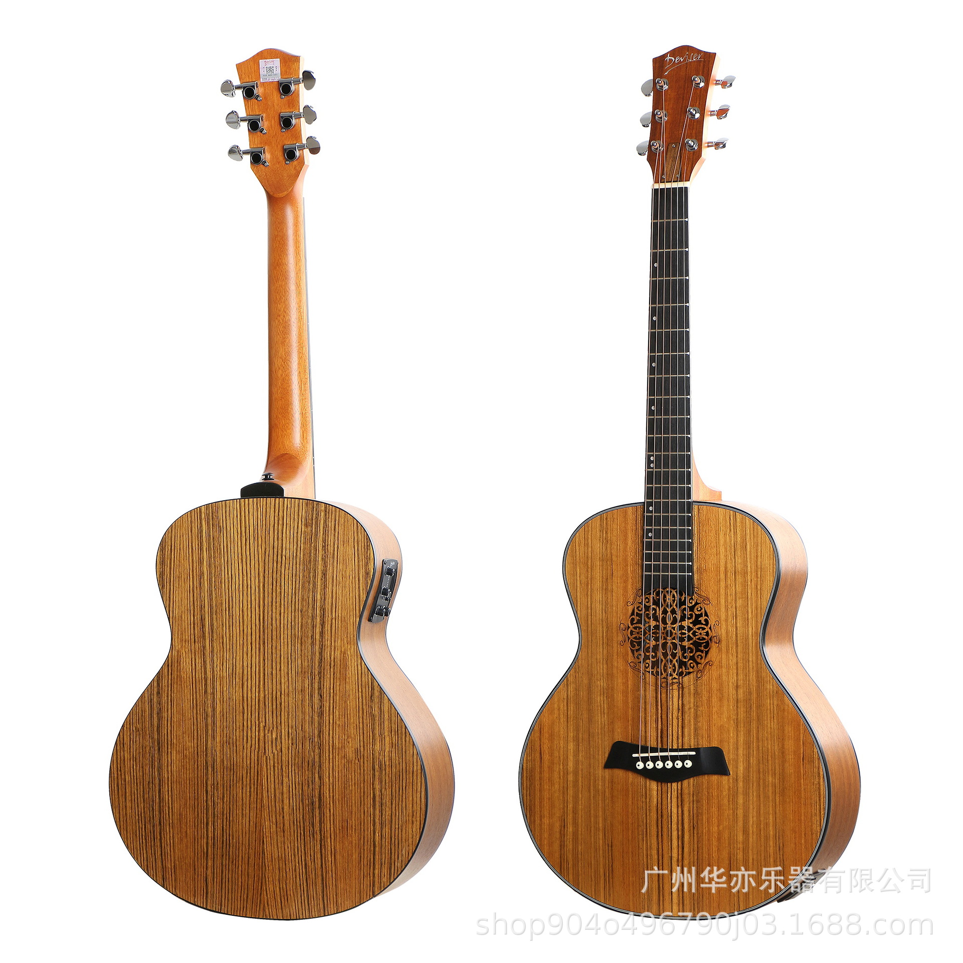 루프트워크 36inch 미니 통기타, 미니 여행용 기타, 전체 호두나무 전자박스, 픽업 장착 목재 기타