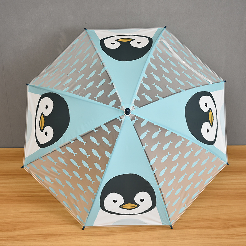 젖빛 동물 어린이 우산 차양 긴 손잡이 직선 막대 귀여운 만화 어린이 맑은 우산 어린이 우산 세트 로고