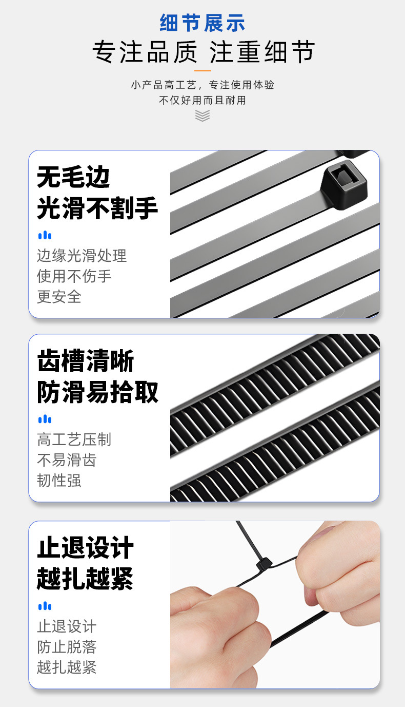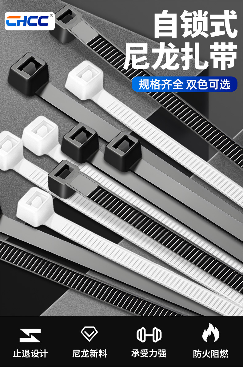 나일론 케이블 타이 4*120 제조업체 국경 간 흑백 두꺼운 자동 잠금 플라스틱 바인딩 스트랩 도매 준비 완료