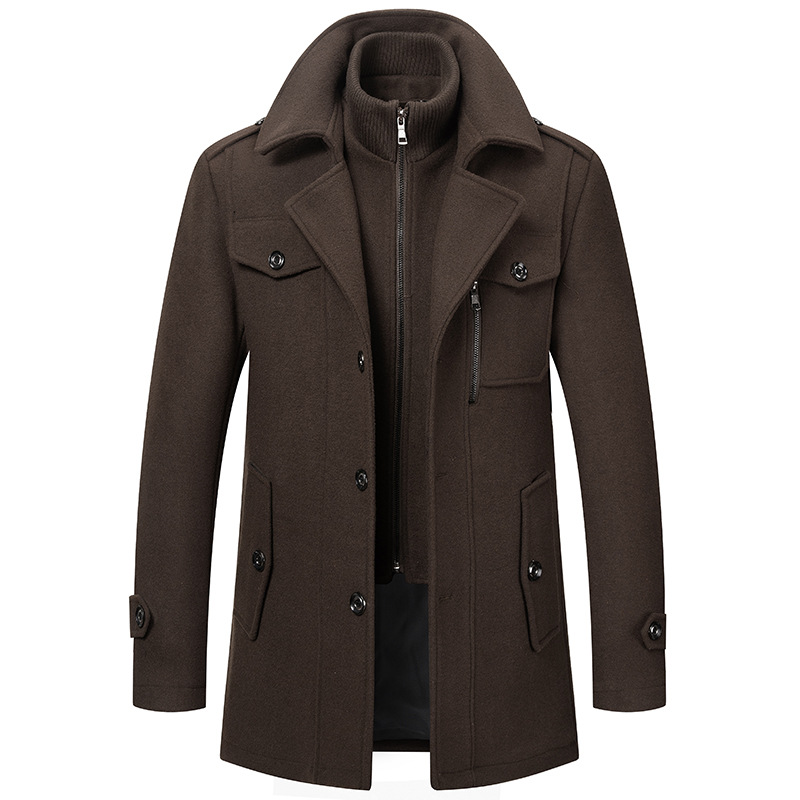 가을과 겨울 남성 비즈니스 울 코트 패션 더블 칼라 방한 모직 코트 남성 코트 크로스 보더 모직 코트 남성스토어 가기