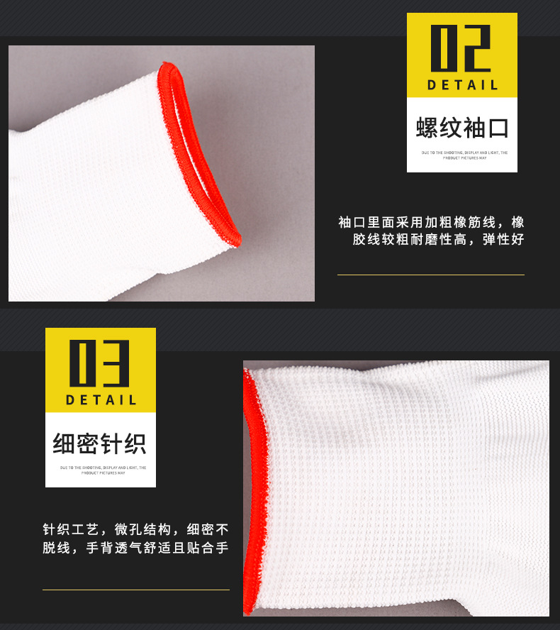PU 팜 코팅 장갑 나일론 13 핀 흰색 정전기 방지 손가락 코팅 미끄럼 방지 장갑 내마모성 미끄럼 방지 접착제 도매