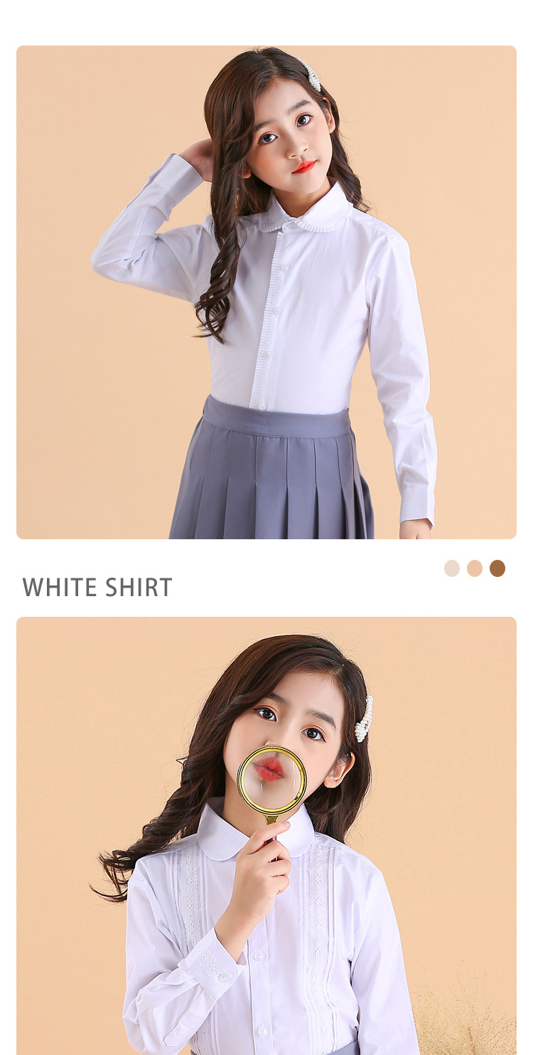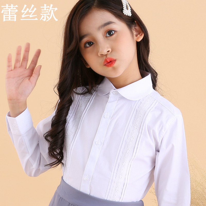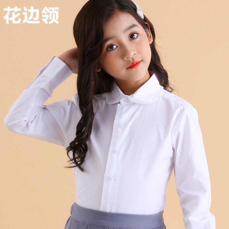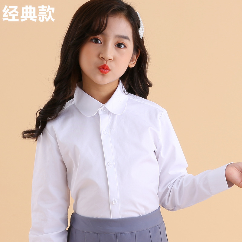 여아 흰 셔츠 아동용 흰색 셔츠 중대형 어린이 및 초등학생을위한 면 봄과 가을 긴 소매 서양 스타일 교복