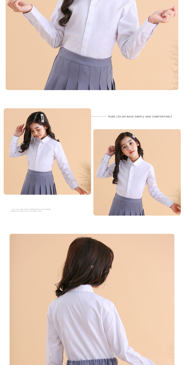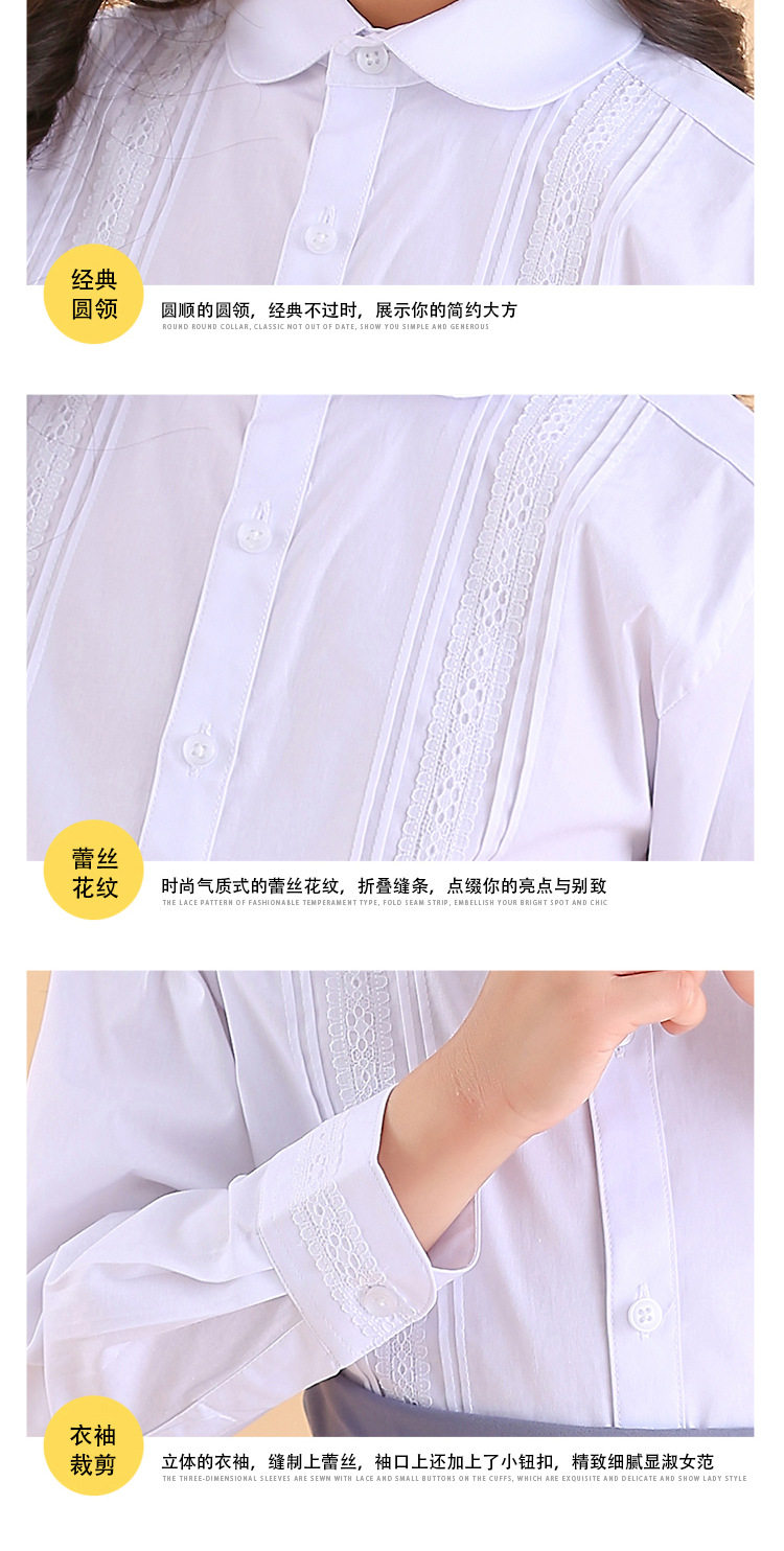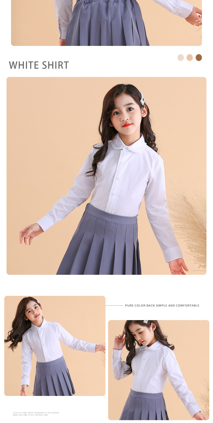 여아 흰 셔츠 아동용 흰색 셔츠 중대형 어린이 및 초등학생을위한 면 봄과 가을 긴 소매 서양 스타일 교복