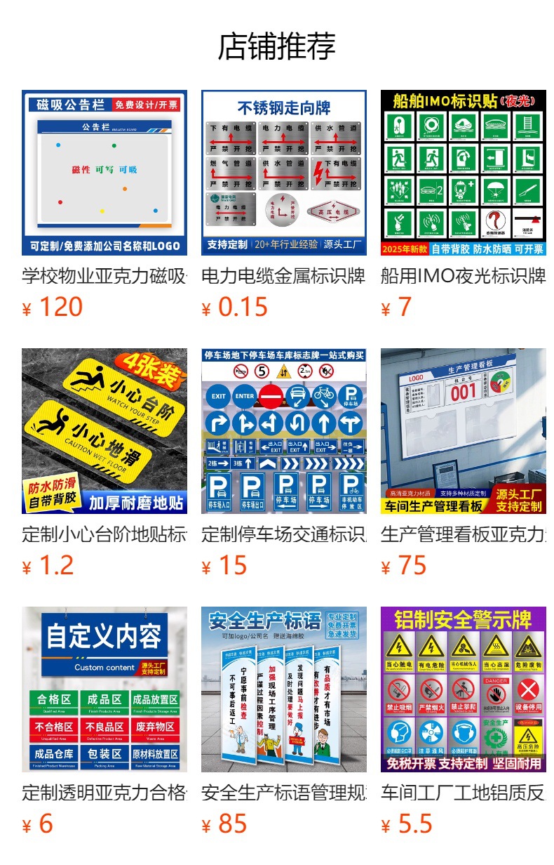 맞춤형 안전 표지판 표시 PVC 경고 표시 금연 알루미늄 판 반사 필름 표시 표지판스토어 가기