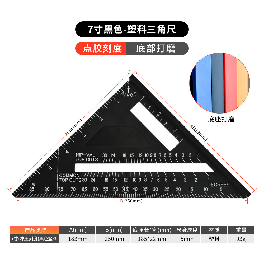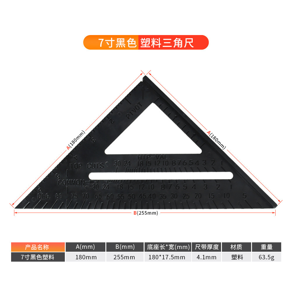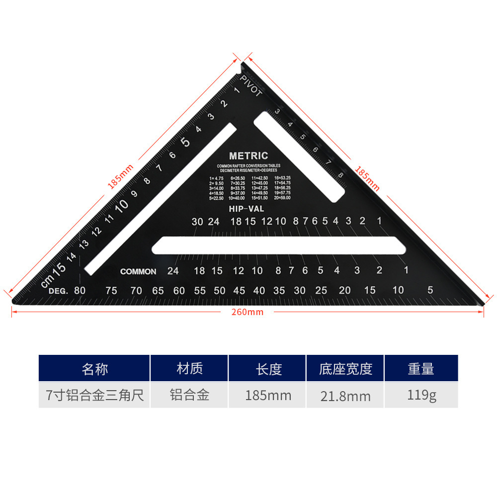 12 인치 알루미늄 합금 삼각형 검정 미터법 90 도 45 도 사각형 크로스 보더 인치 7 인치 목공 삼각형스토어 가기