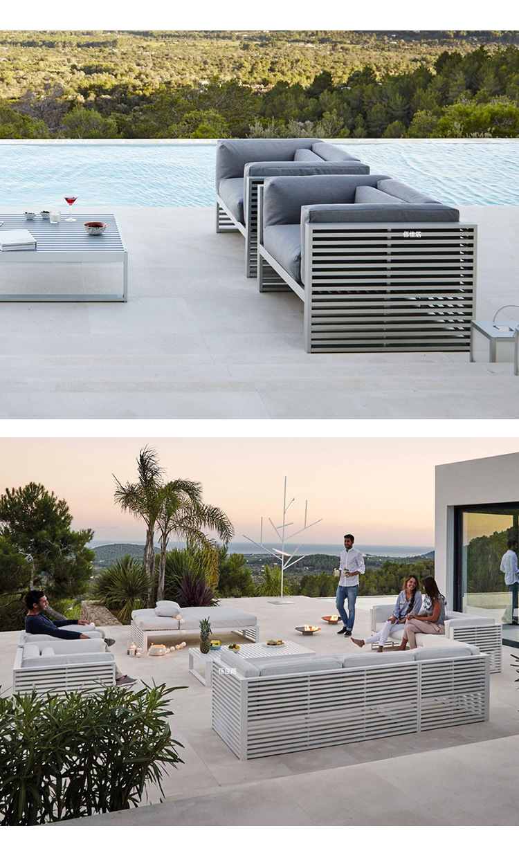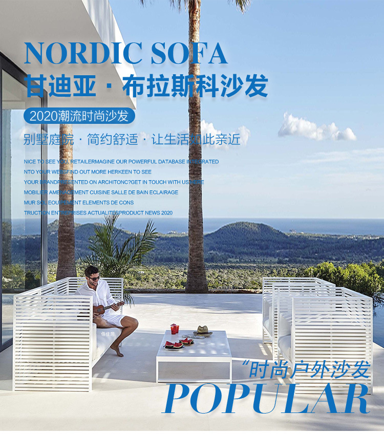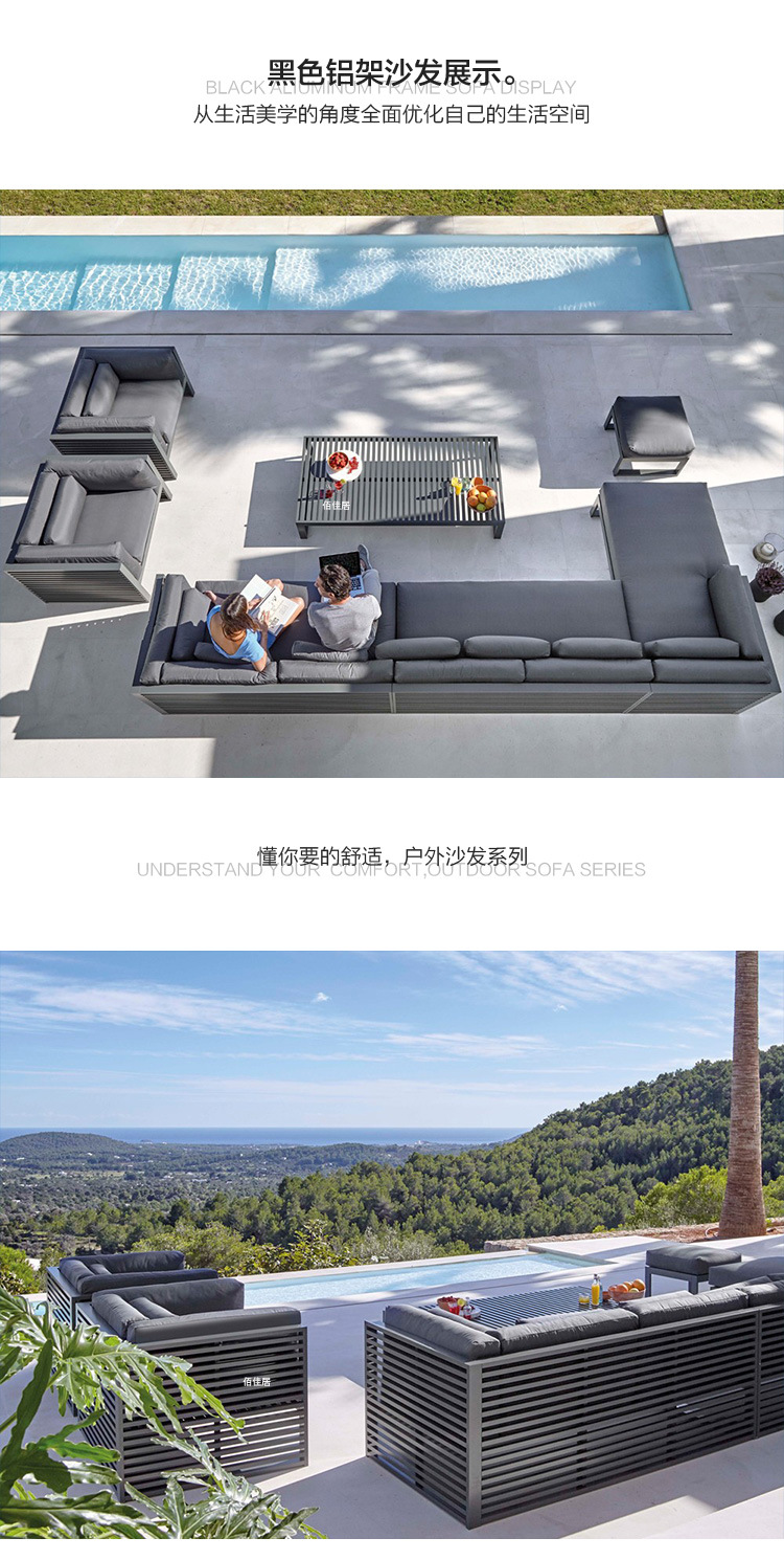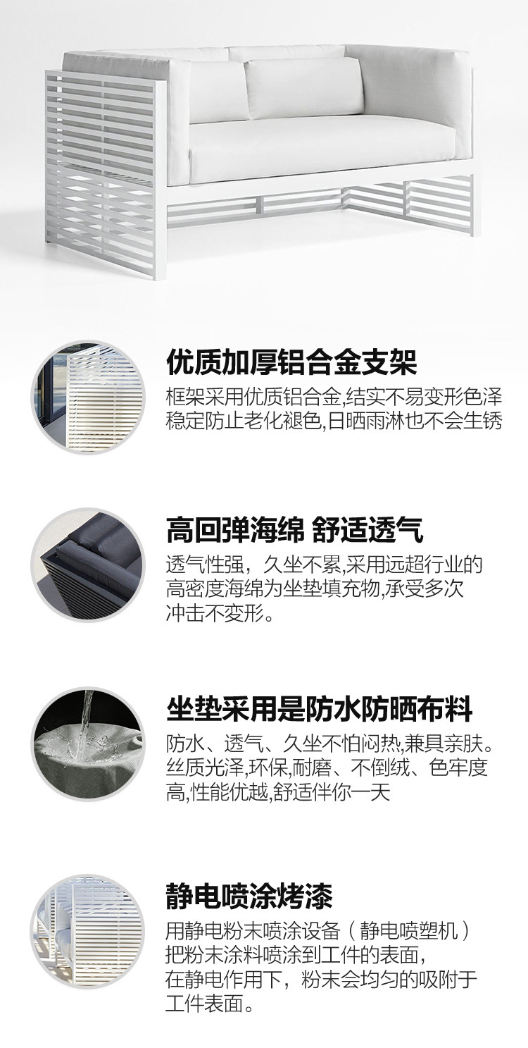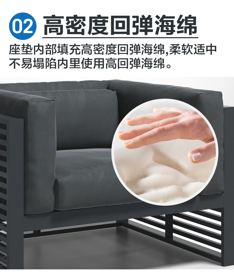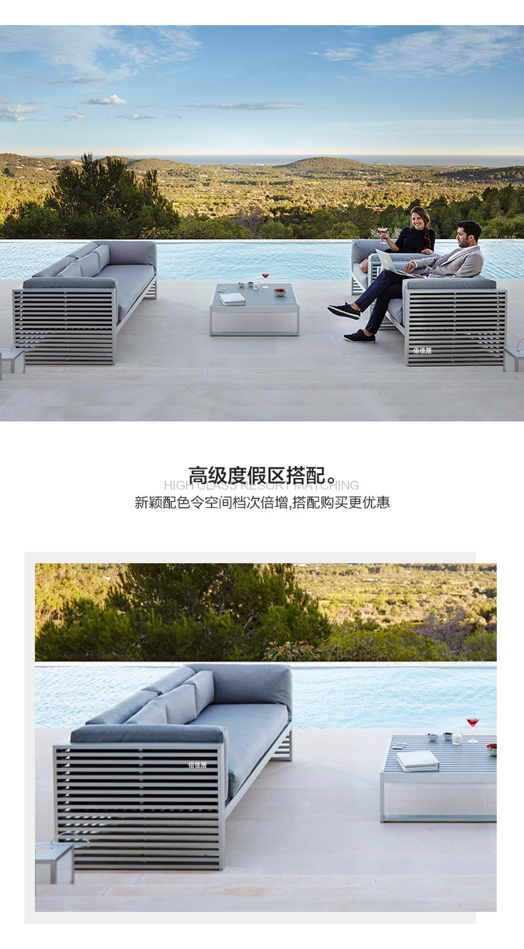 알루미늄 합금 야외 북유럽 소파 호텔 빌라 테라스 정원 커피 테이블 조합 모델 룸 소프트 피팅 안뜰 가구스토어 가기