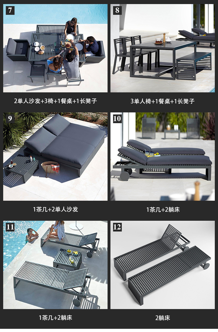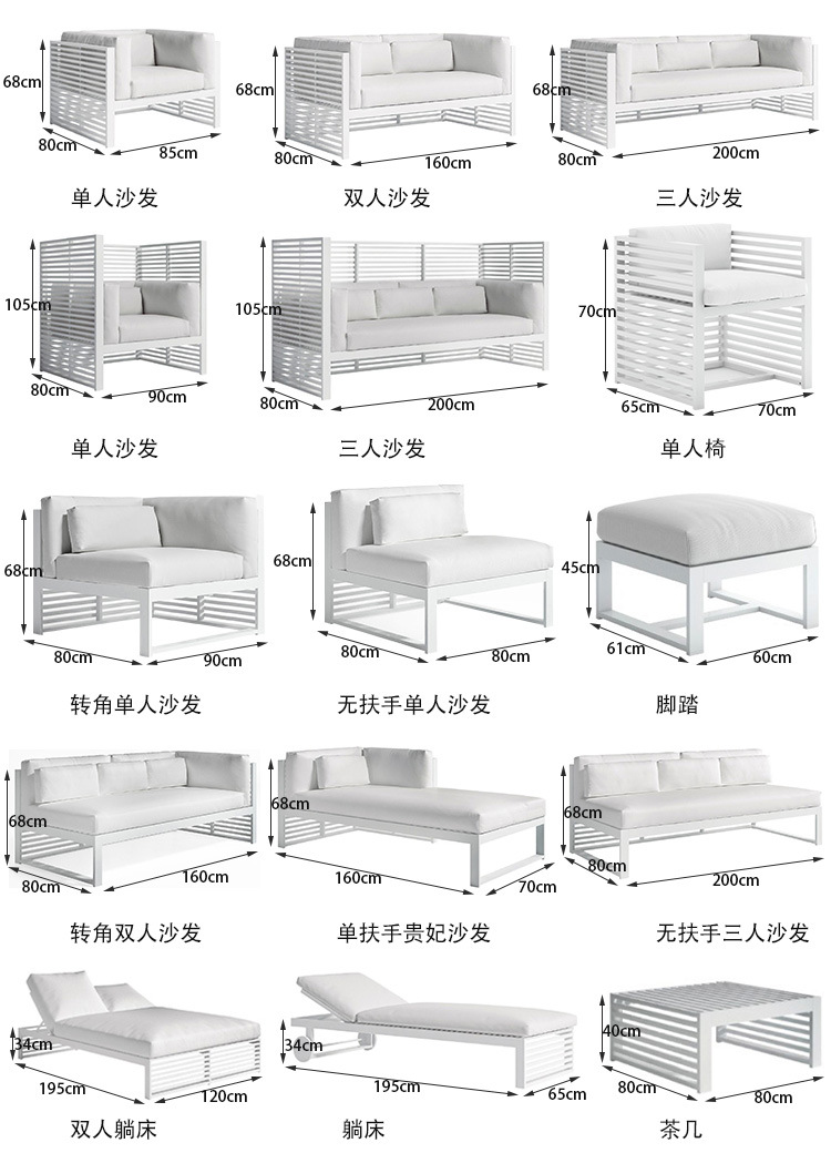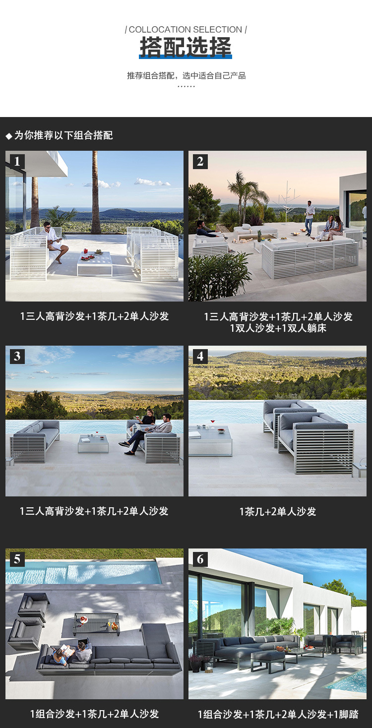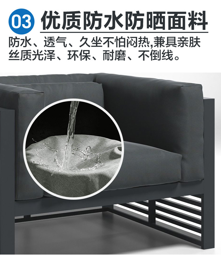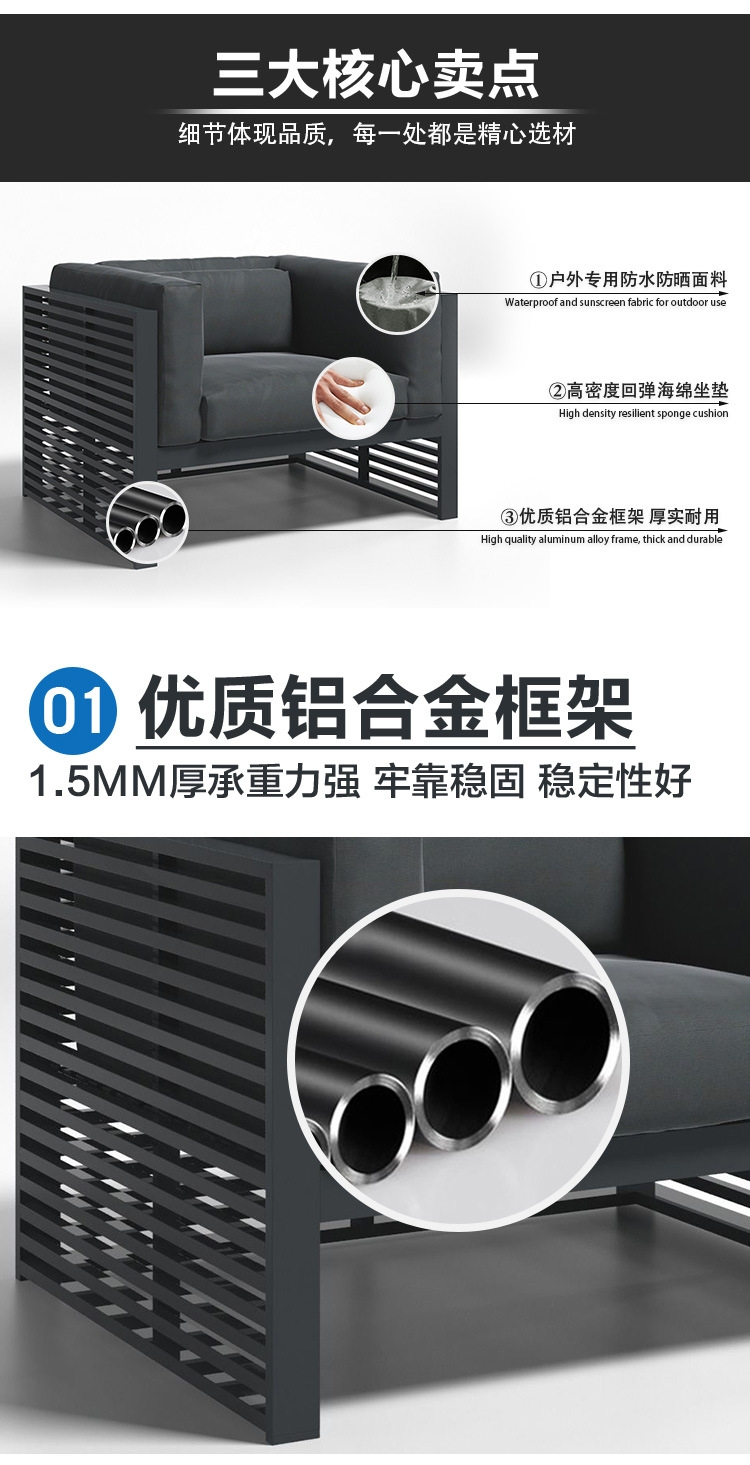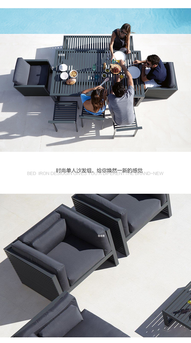 알루미늄 합금 야외 북유럽 소파 호텔 빌라 테라스 정원 커피 테이블 조합 모델 룸 소프트 피팅 안뜰 가구스토어 가기