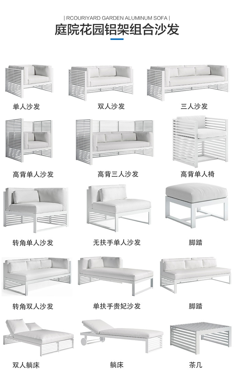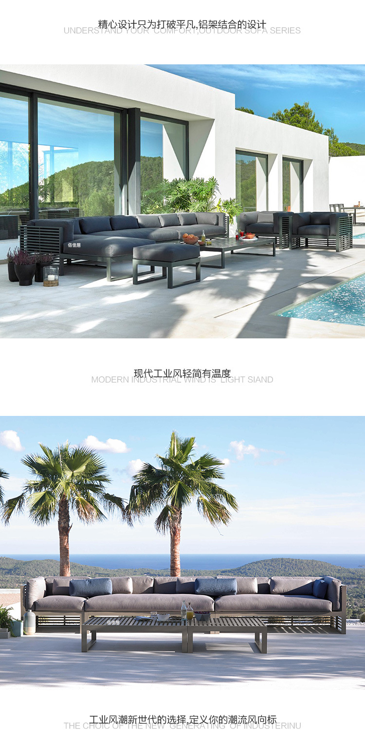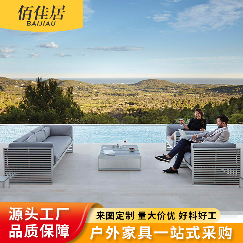 알루미늄 합금 야외 북유럽 소파 호텔 빌라 테라스 정원 커피 테이블 조합 모델 룸 소프트 피팅 안뜰 가구