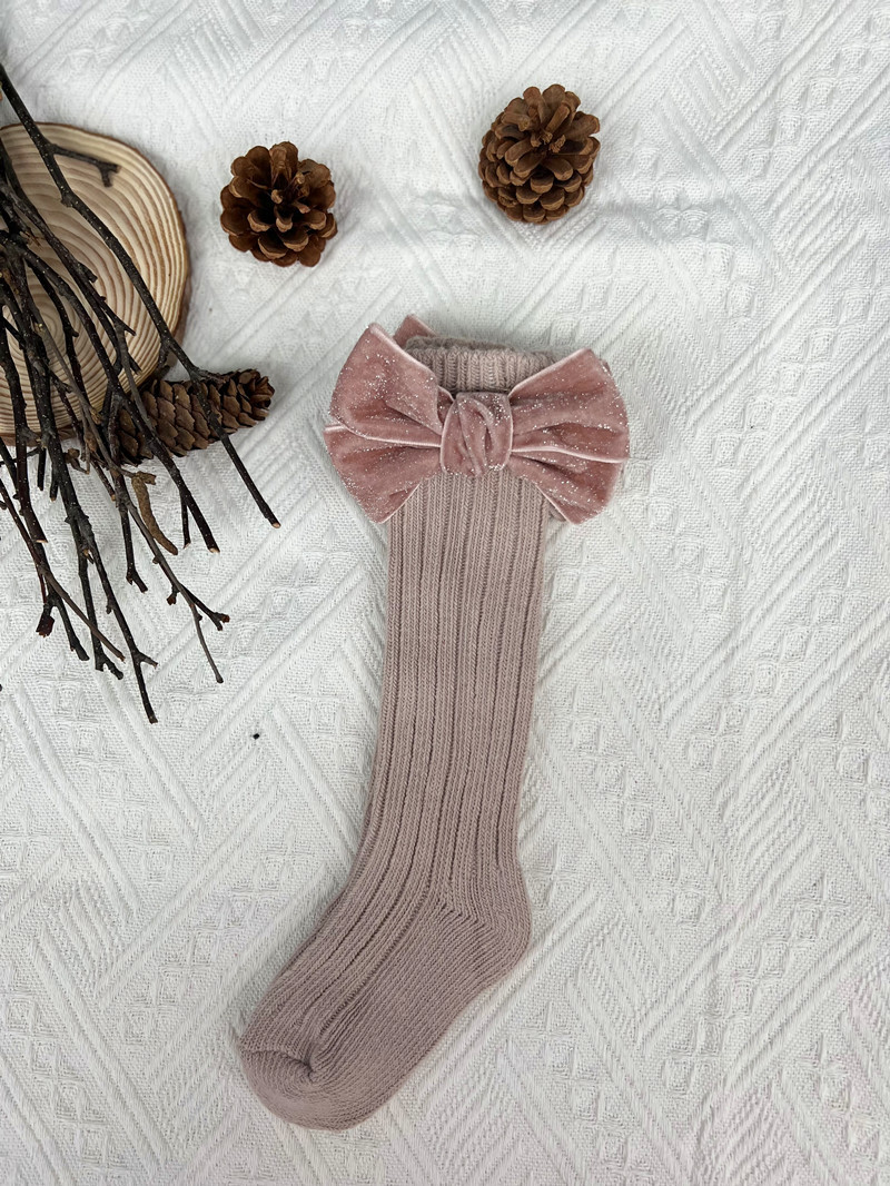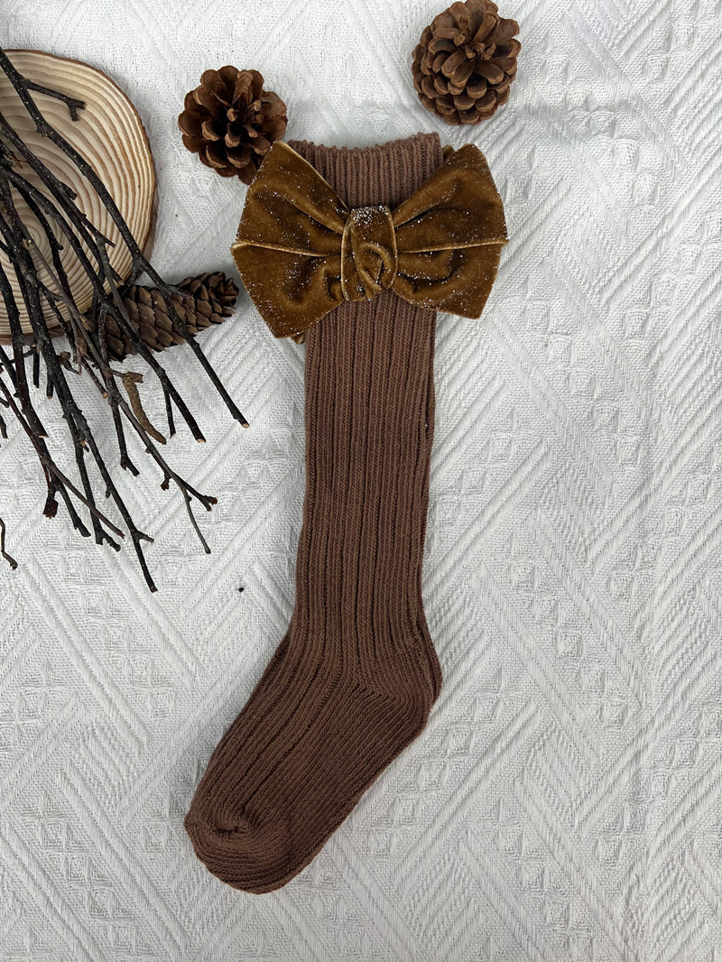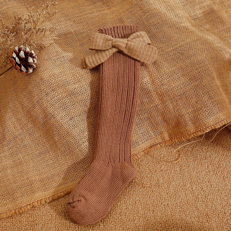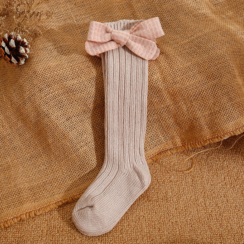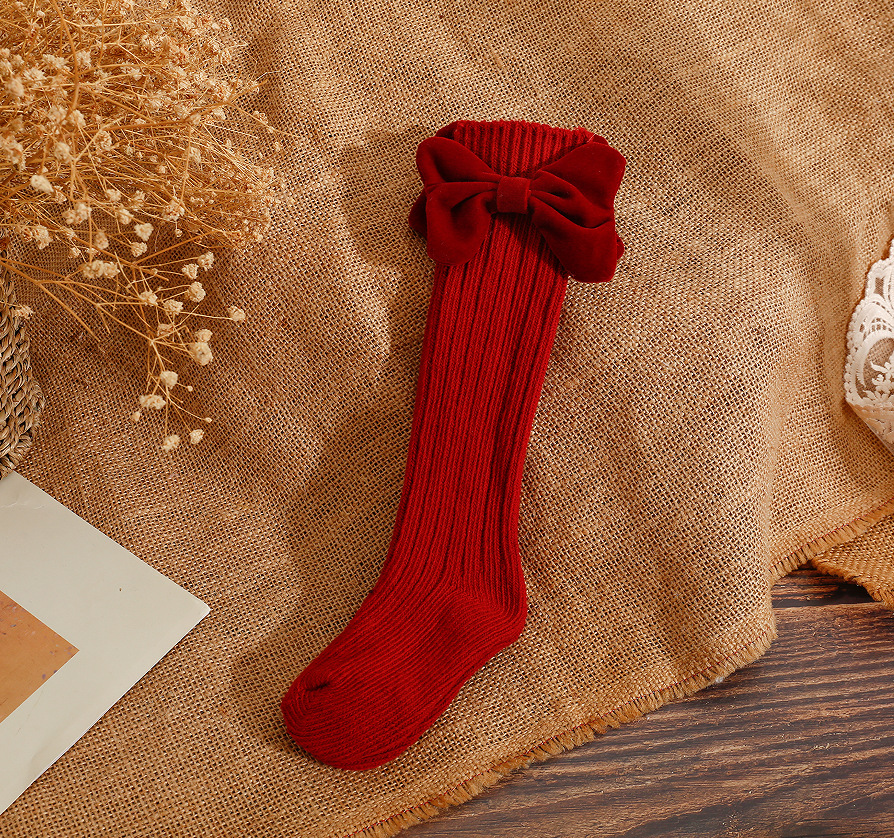 2020ins 어린이 스페인 가을과 겨울 새로운 대형 보우 울 아기 양말 단색 높고 긴 양말스토어 가기