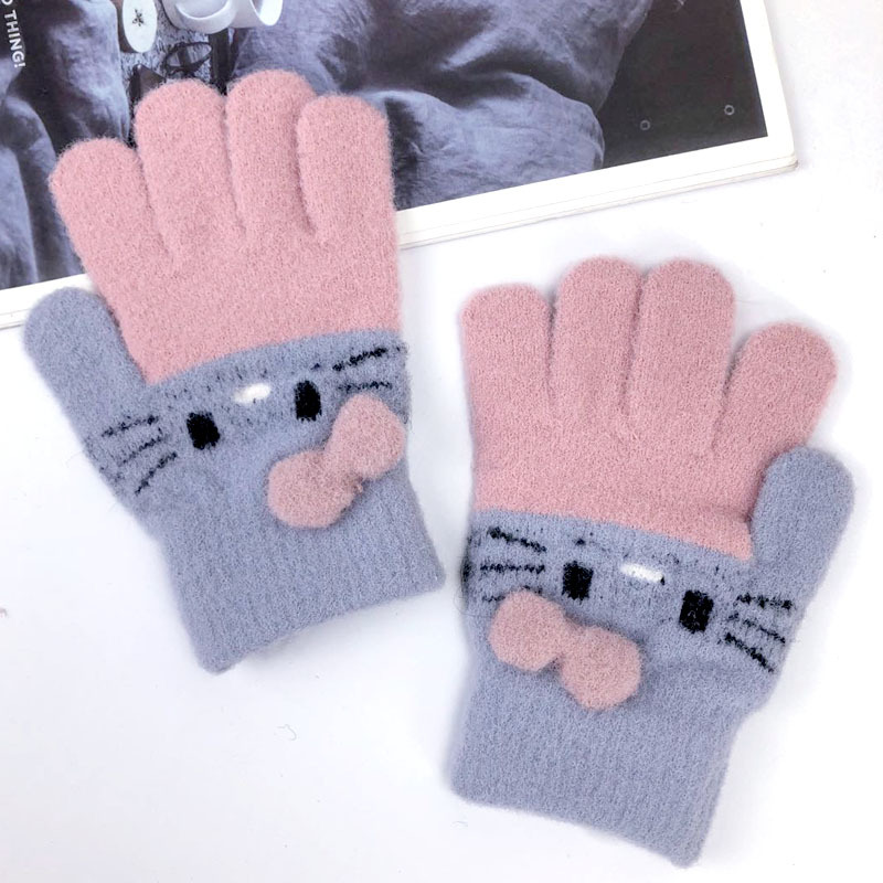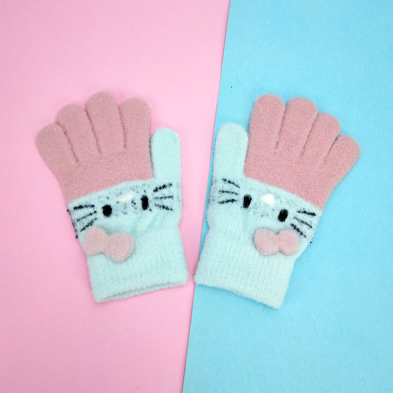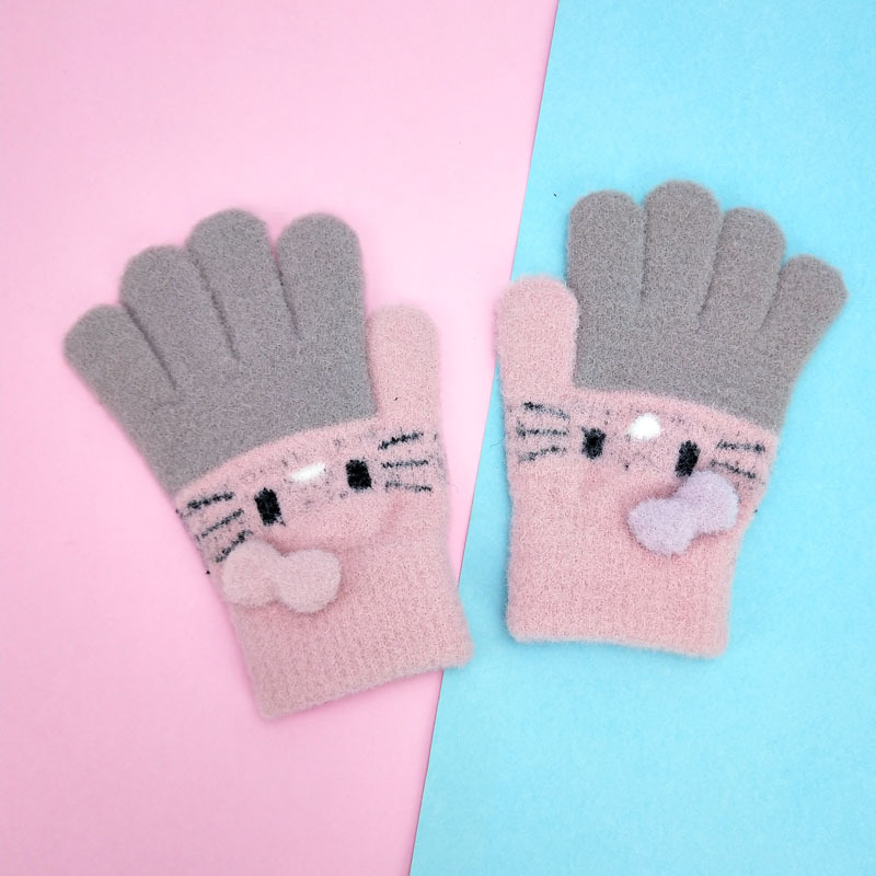 어린이 장갑 소년과 소녀 6-14 세 겨울 따뜻한 손가락 장갑 귀여운 고양이 두꺼운 탄성스토어 가기