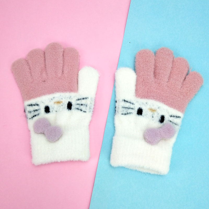 어린이 장갑 소년과 소녀 6-14 세 겨울 따뜻한 손가락 장갑 귀여운 고양이 두꺼운 탄성