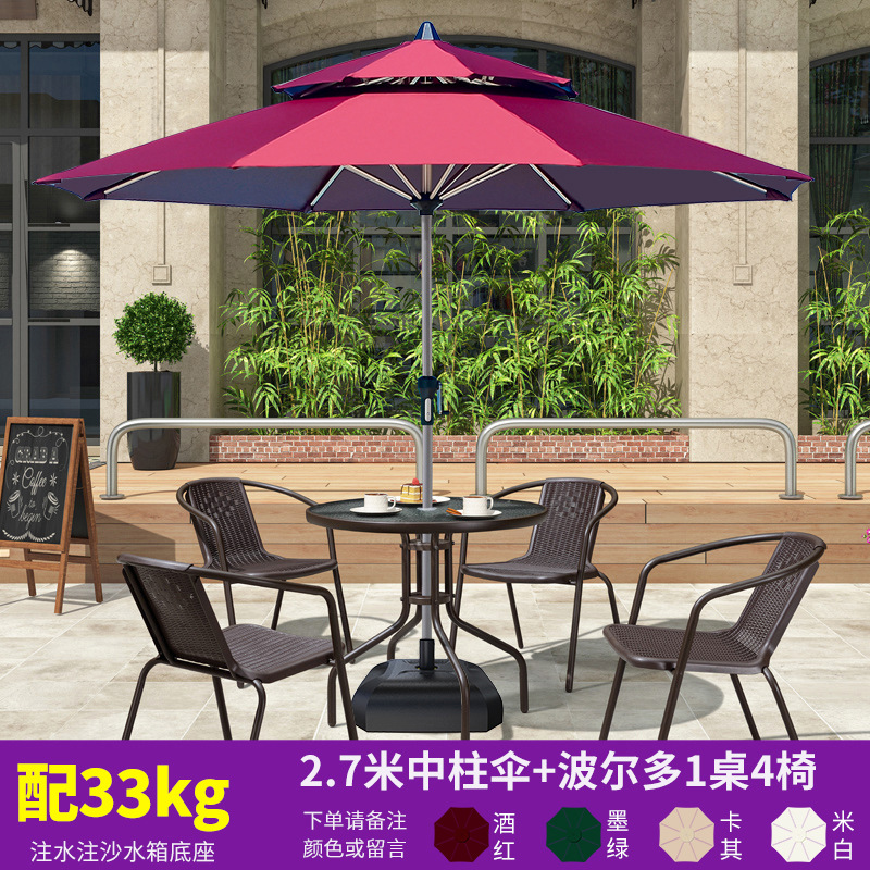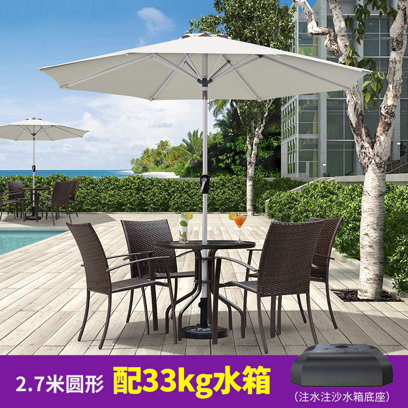 • 2.7m 원형 이중 천막 우산(처진 가장자리 포함) [33KG 물탱크 베이스 포함]