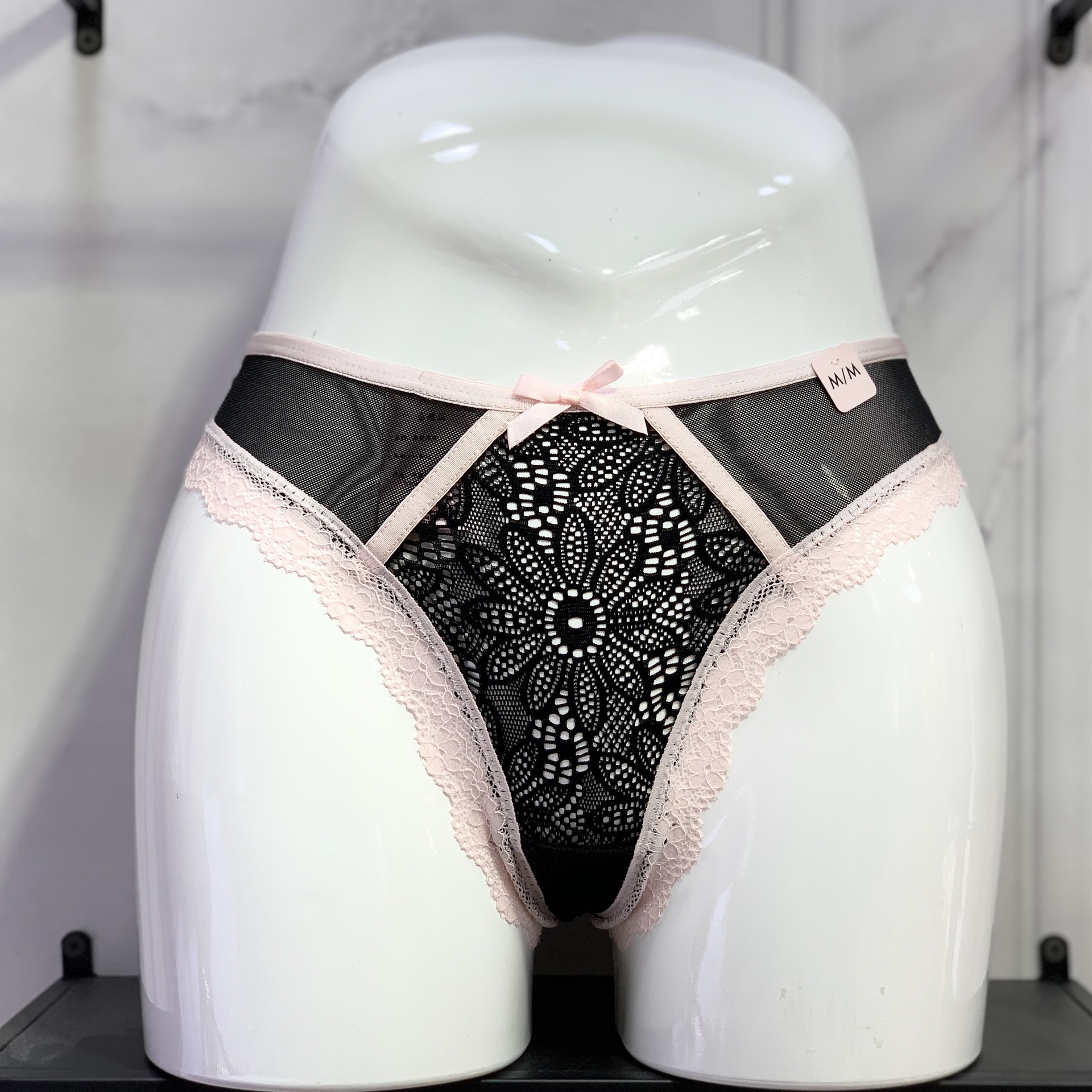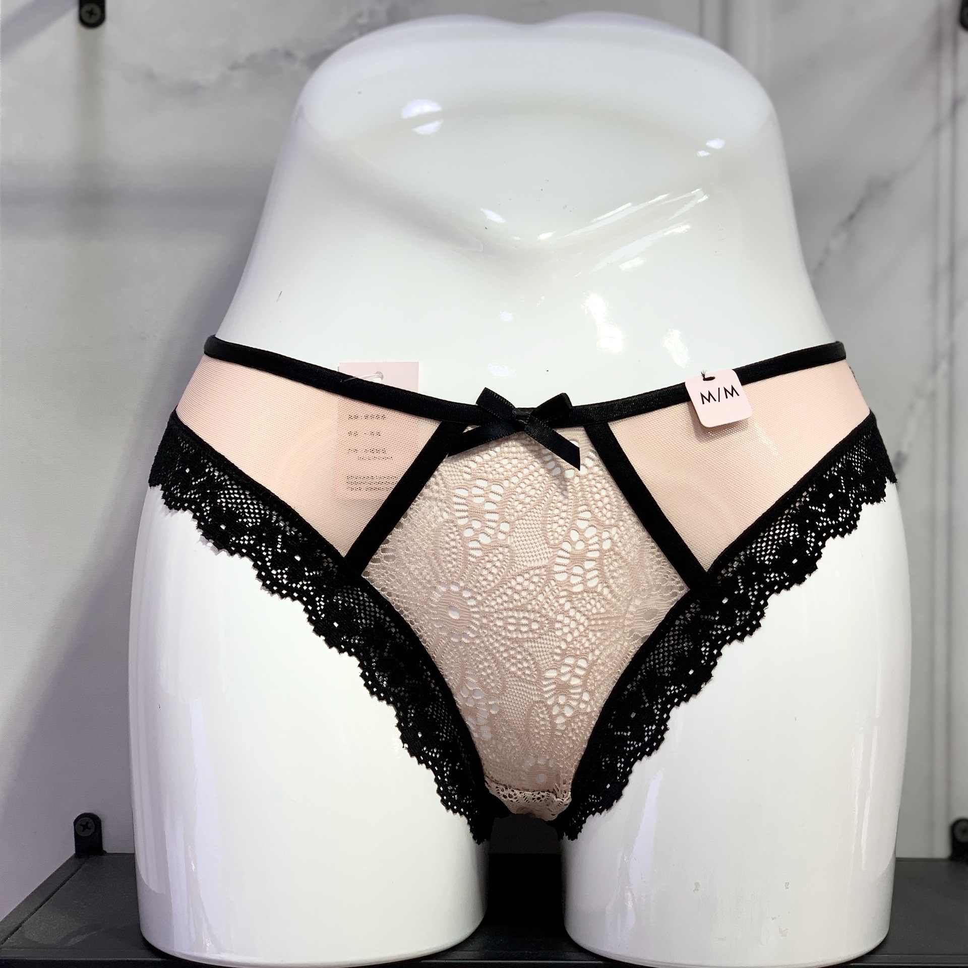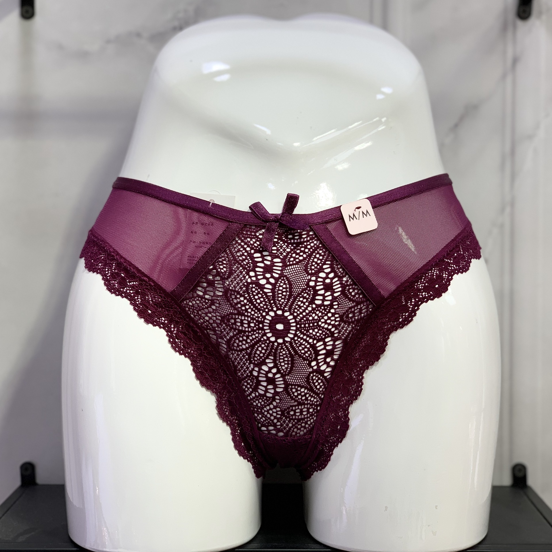 Luo Lisha 섹시한 레이스 속옷 여자의 낮은 허리 레이스 활 허리 삼각형 여자의 엉덩이 리프팅 섹시한 끈 팬티스토어 가기