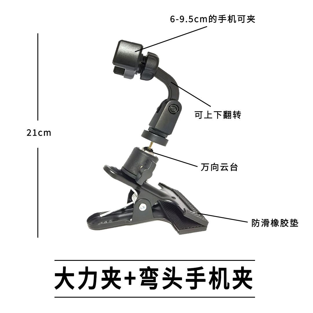 • 강력한 클램프 + 팔꿈치 구형 휴대폰 클램프