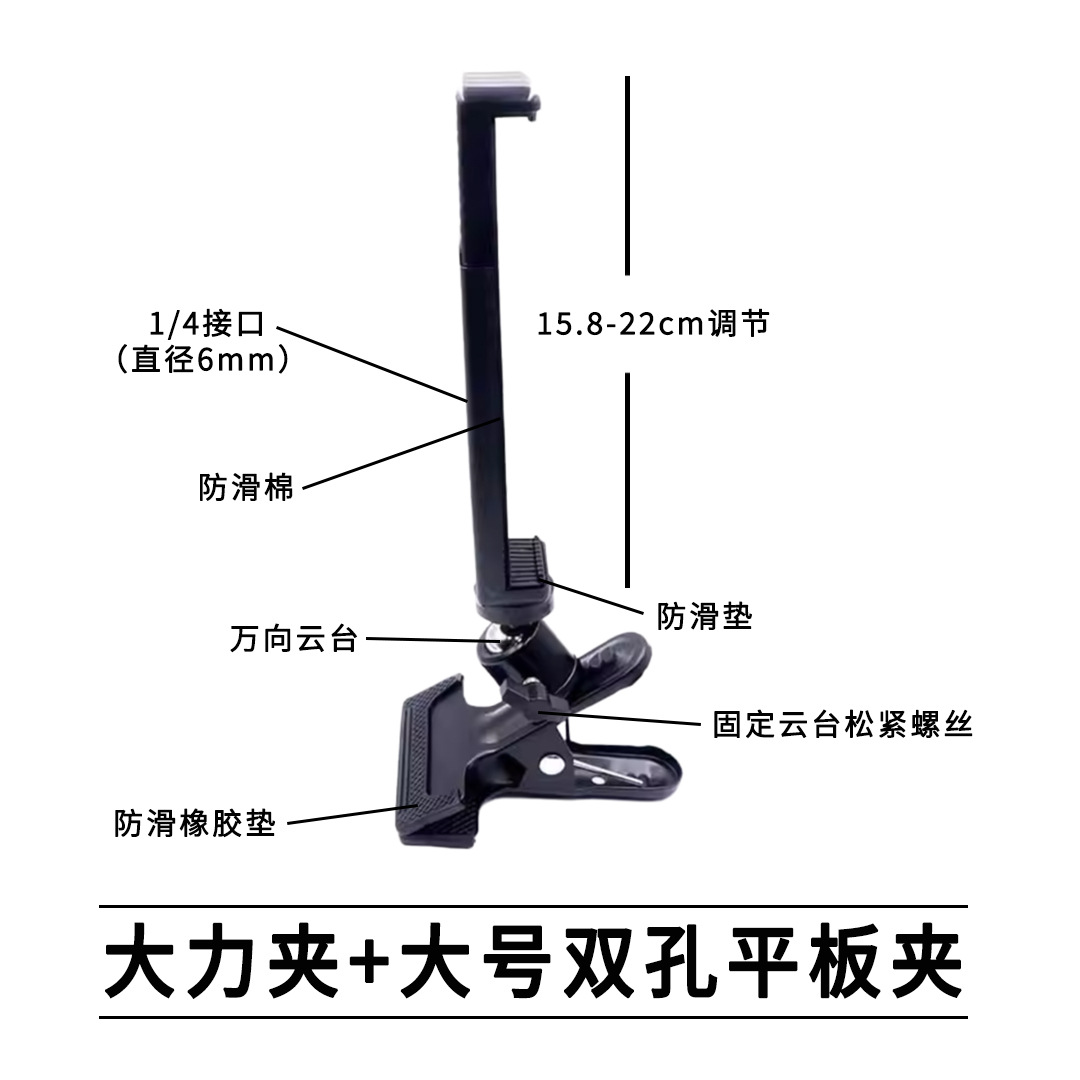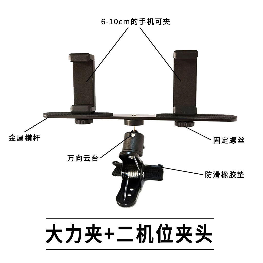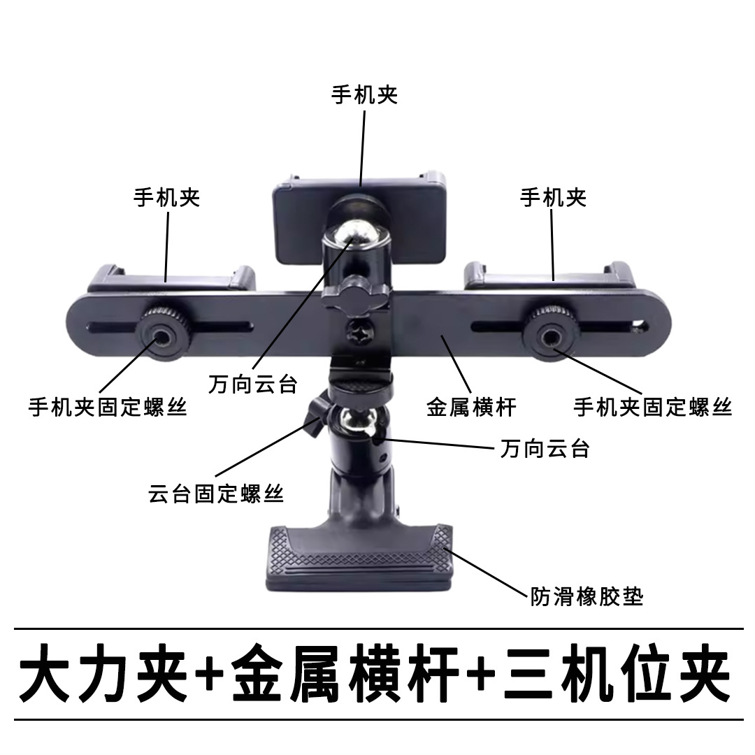 • 강력한 클램프 + 금속 2위치 크로스바 + 휴대폰 클램프 2개