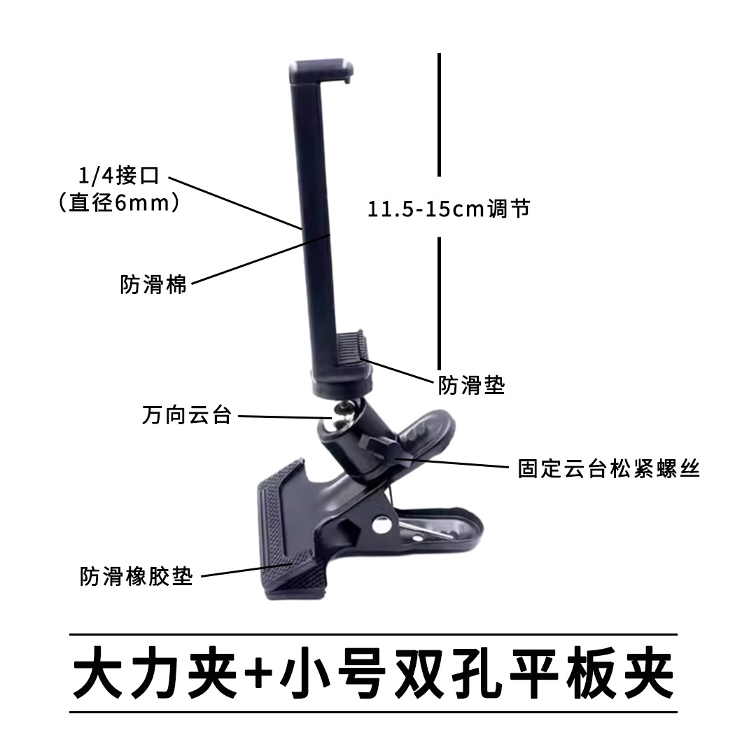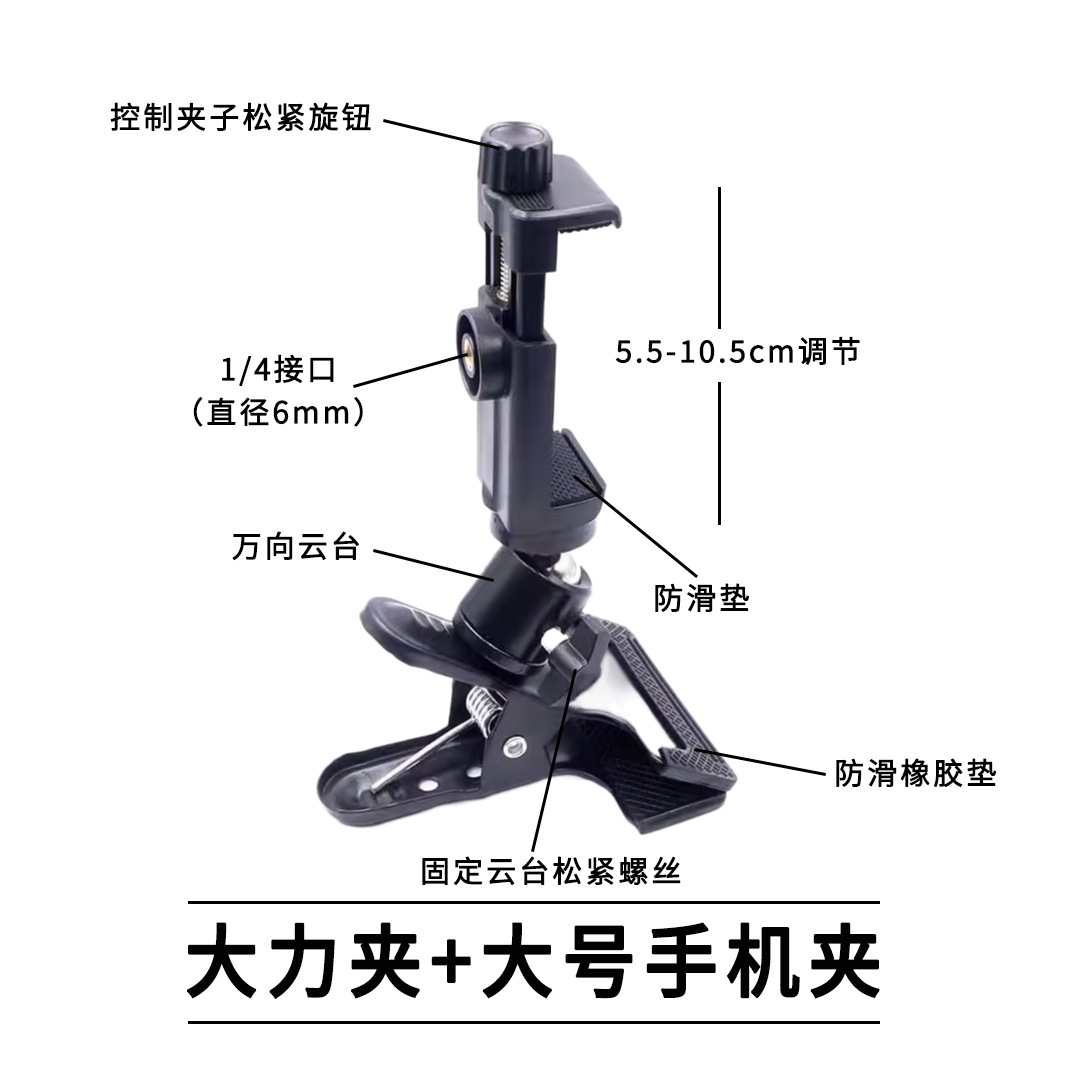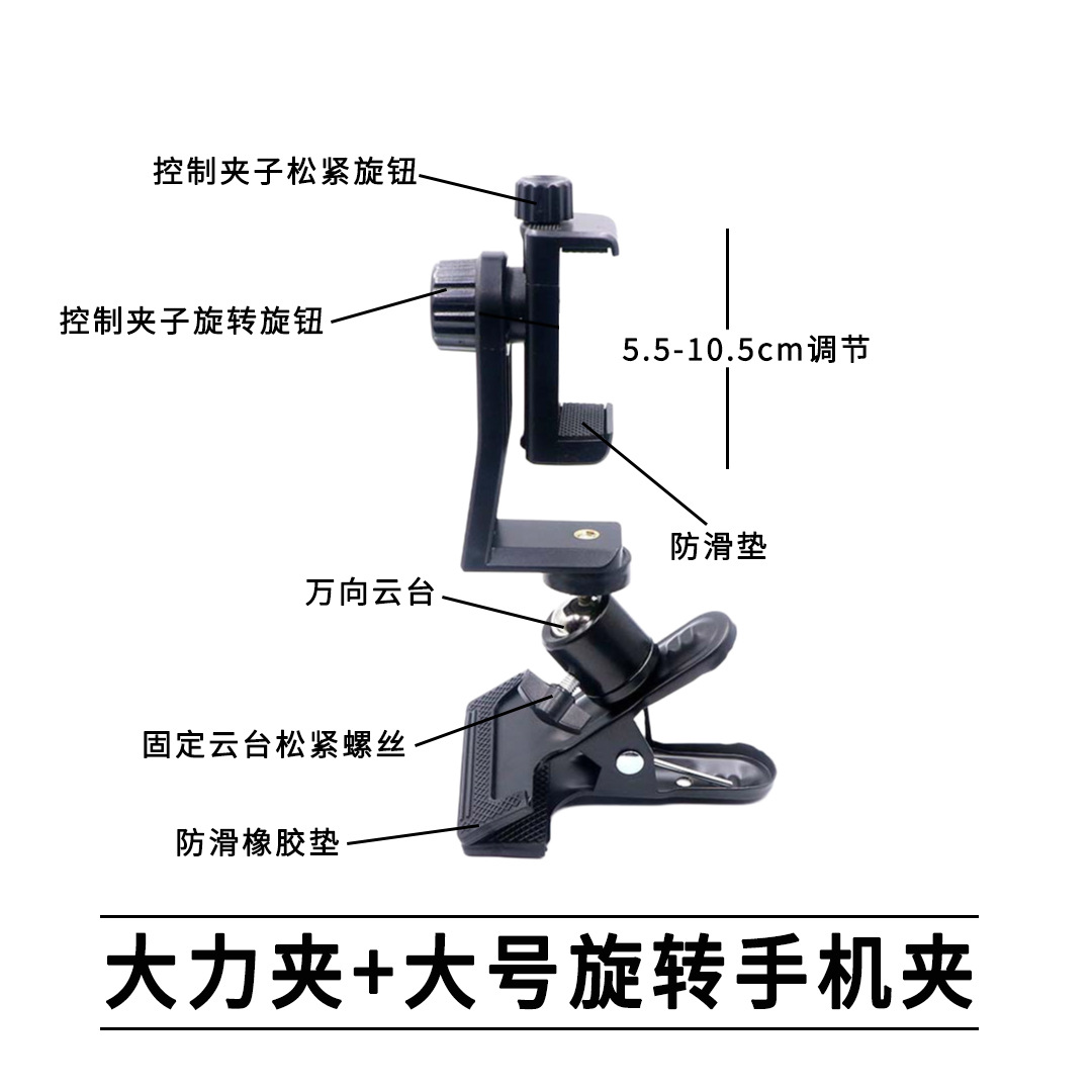 • 강력한 클램프 + 대형 회전 휴대폰 클램프(나사 고정)