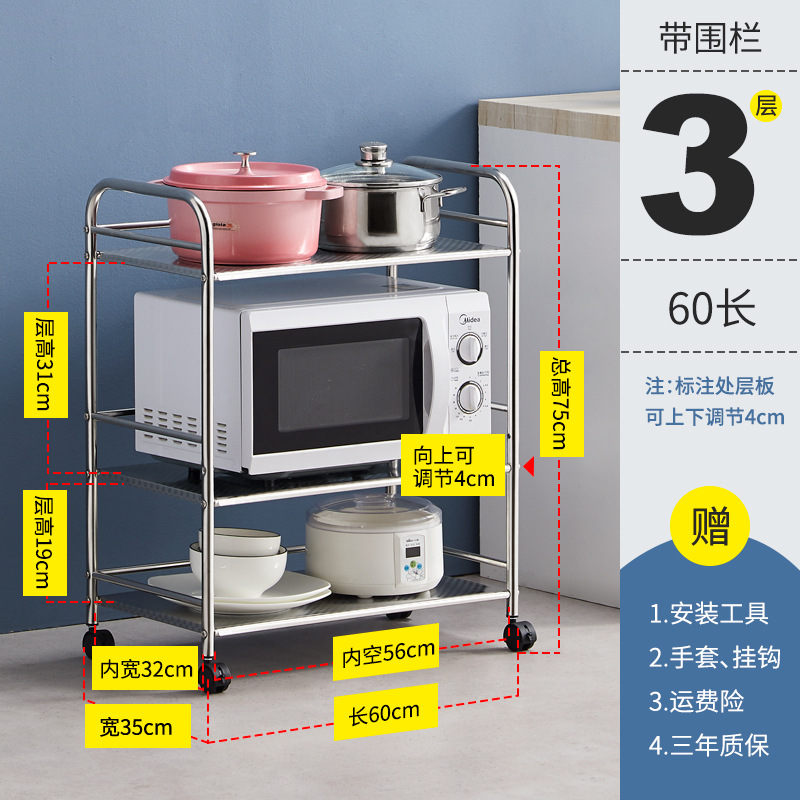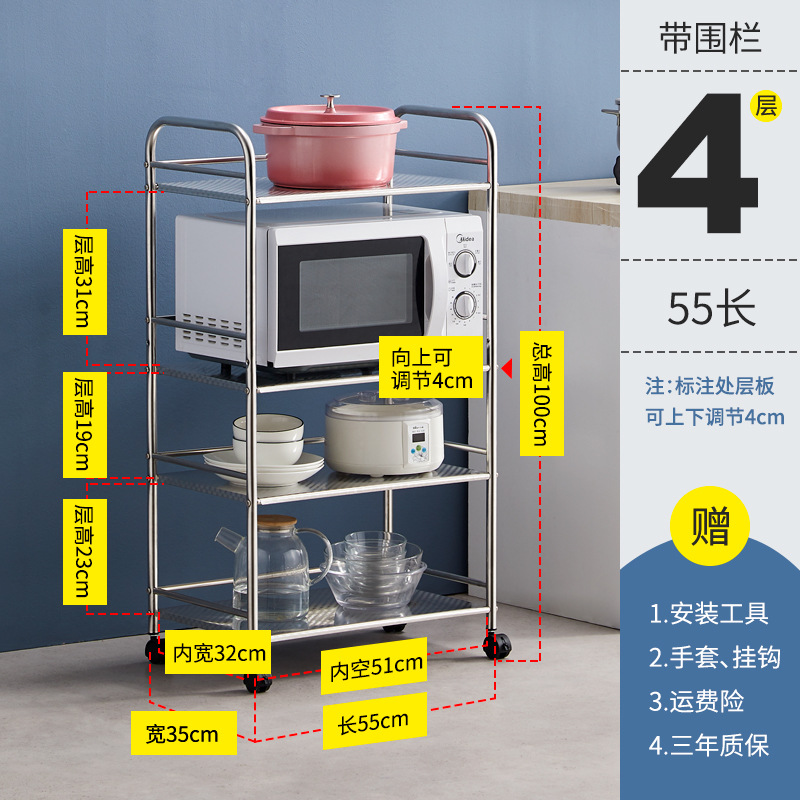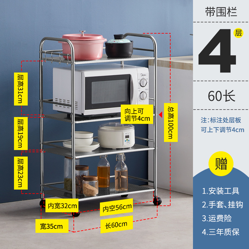스테인레스 스틸 주방 스토리지 랙 바닥 다층 스토리지 랙 가정용 전자 레인지 저장 용품 조미료 랙스토어 가기