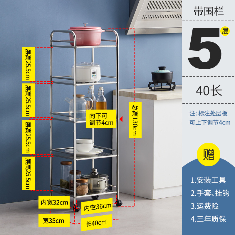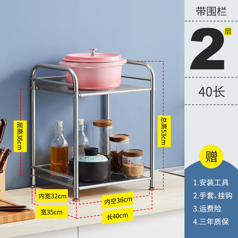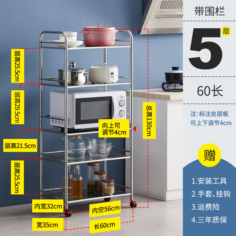 스테인레스 스틸 주방 스토리지 랙 바닥 다층 스토리지 랙 가정용 전자 레인지 저장 용품 조미료 랙