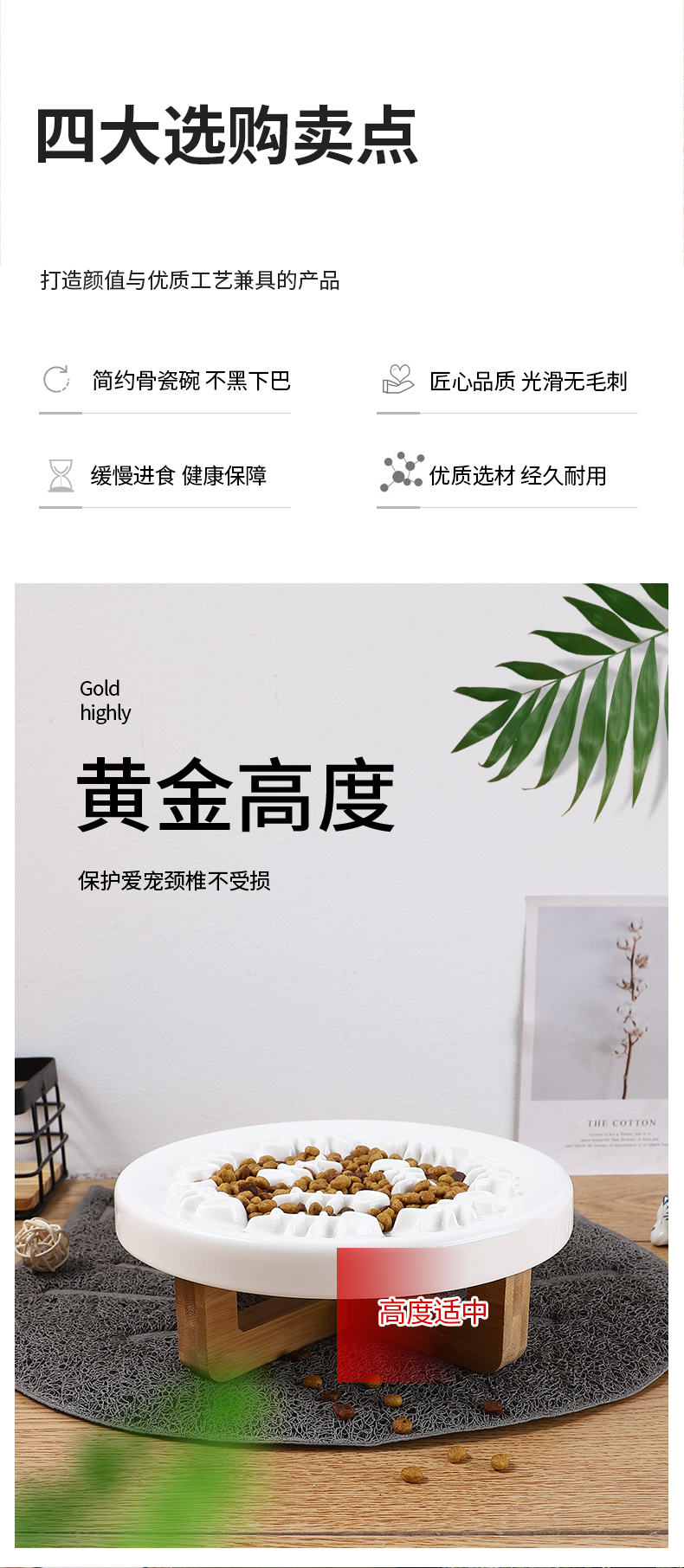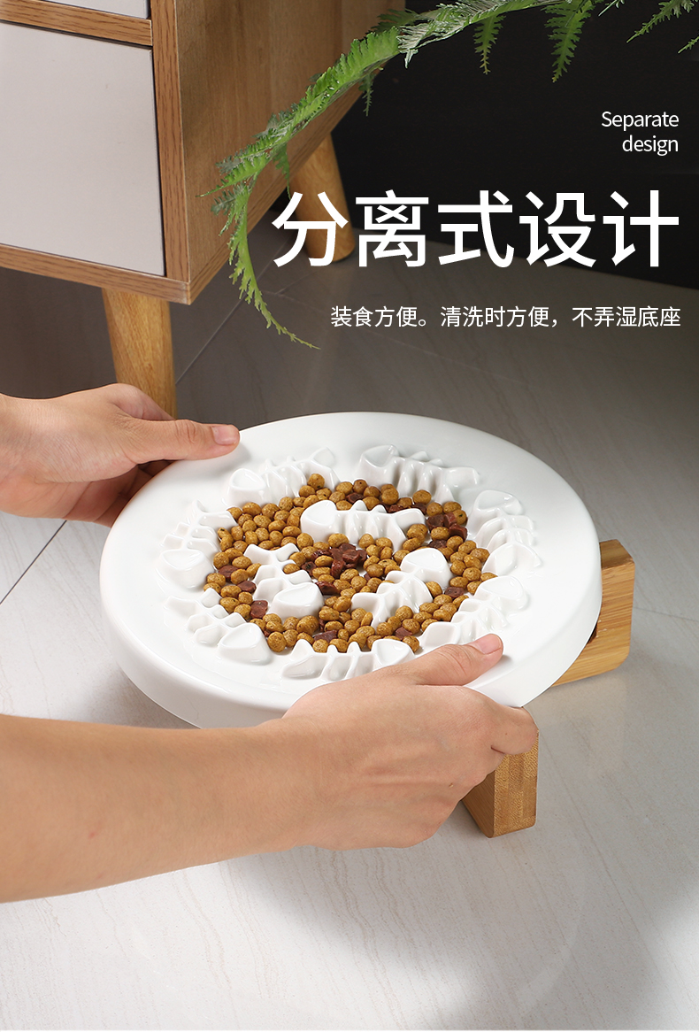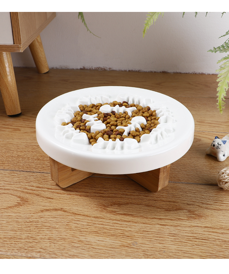 단단한 나무 높이 고양이 개 세라믹 질식 방지 천천히 먹는 그릇 목 보호 천천히 먹는 장치 미끄럼 방지 노크 작은 개 접시스토어 가기