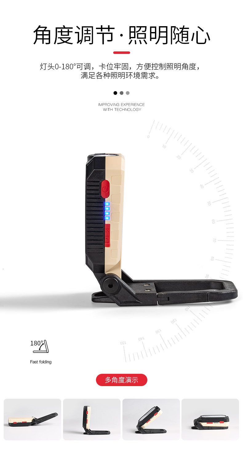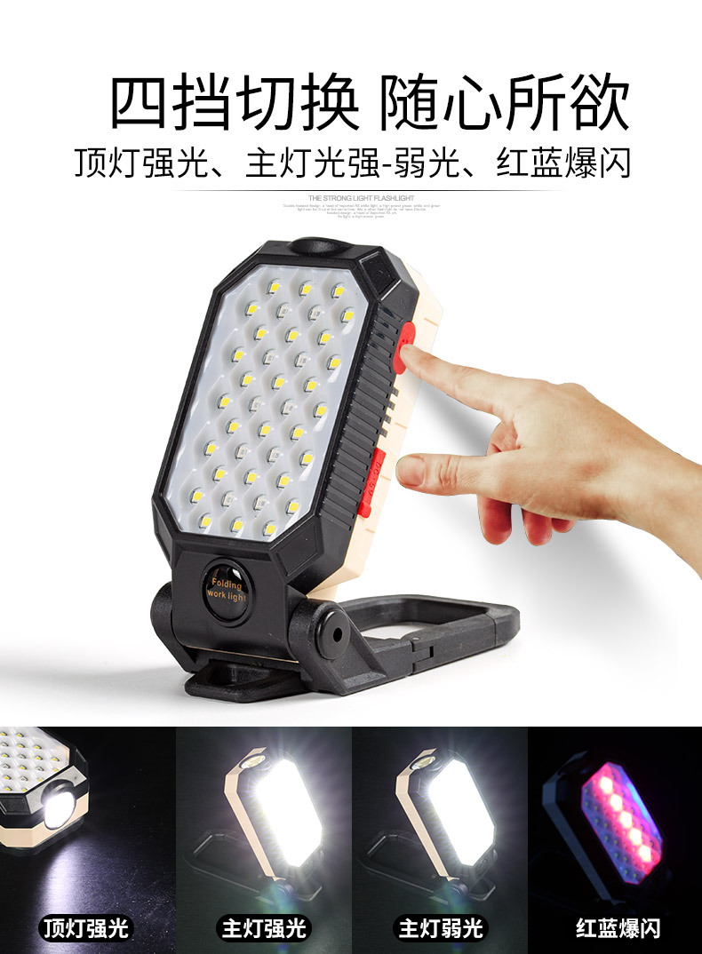 자석이있는 국경 간 새로운 COB 작업등 USB 충전식 LED 후크 전원 디스플레이 비상 손전등 유지 보수 등