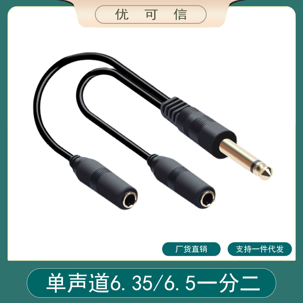 6.35 남성 - 2 6.35 여성 1/2 오디오 모노 어댑터 연장 케이블 마크 마이크 분배기 기타스토어 가기