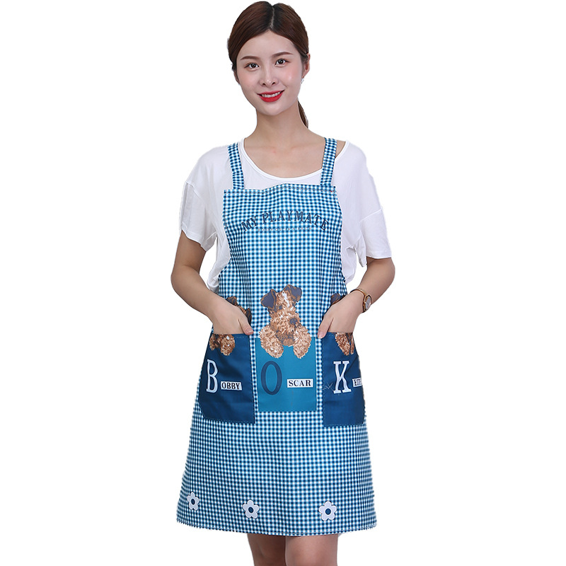 패션 앞치마 만화 세 마리 개 한국 스타일 끈 없는 민소매 포켓 레스토랑 성인 광고 귀여운 커플 스타일스토어 가기