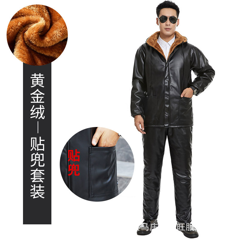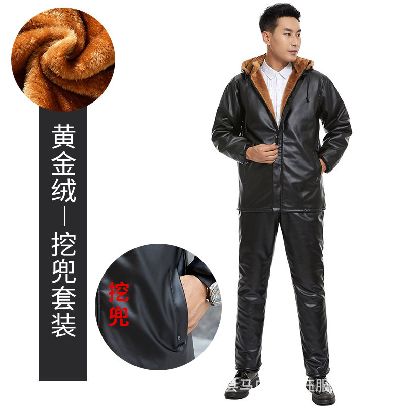 2020 새로운 PU 기모 두꺼운 남성 가죽 따뜻한 방풍 오일 방수 승마 바지 재킷스토어 가기