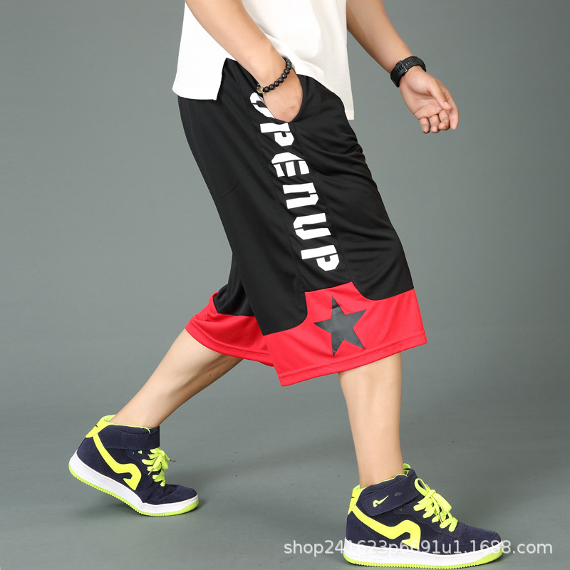 300kg 플러스 사이즈 남자의 바지 농구 반바지 플러스 지방과 플러스 뚱뚱한 남자의 크롭 스포츠 바지 남자의 느슨한 비치 바지