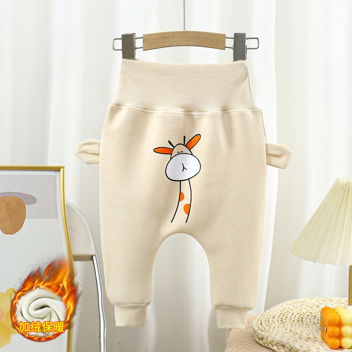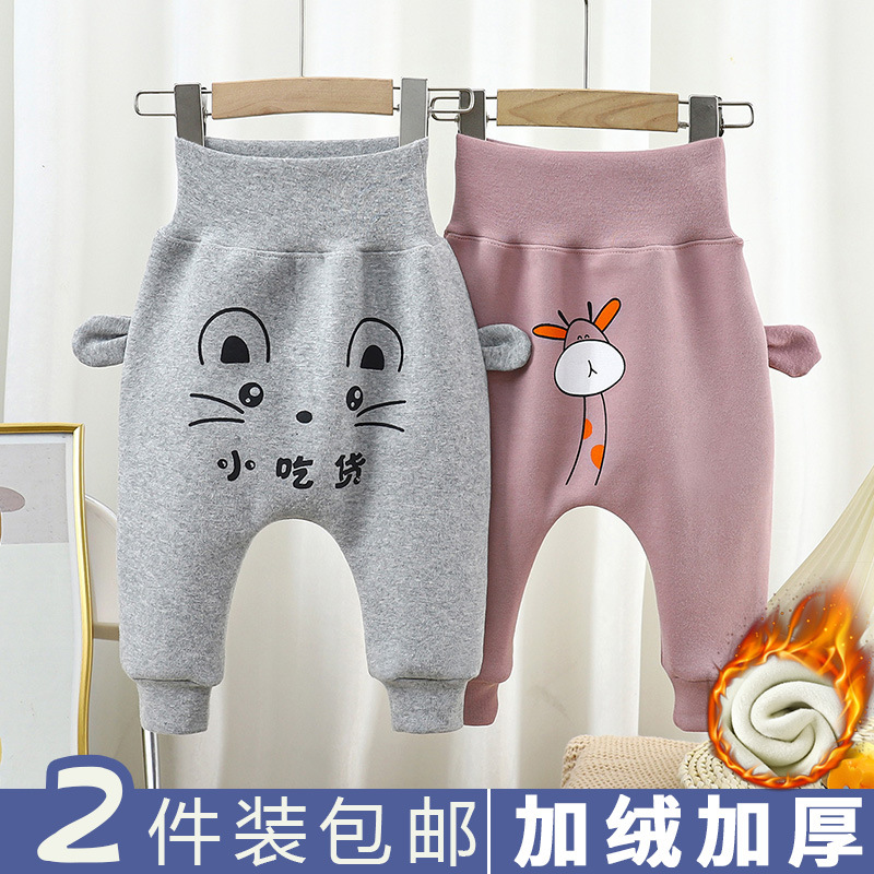 2025 아기 바지 가을, 겨울 소년과 소녀를위한 새로운 두꺼운 캐주얼 바지 대형 pp 바지 아기 높은 허리 배꼽 보호 바지 유행스토어 가기
