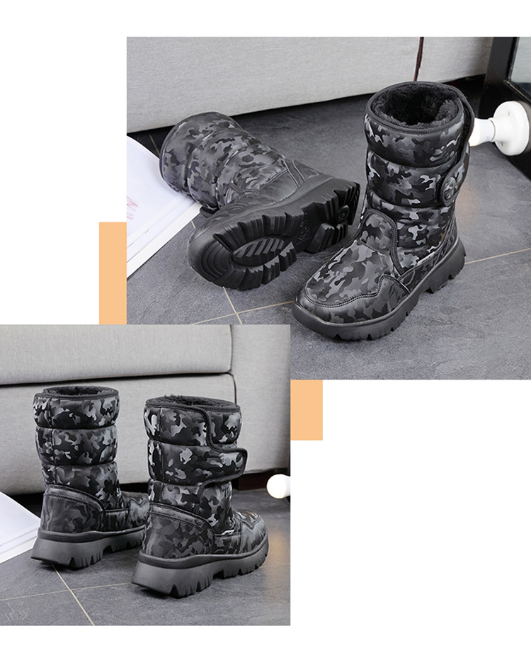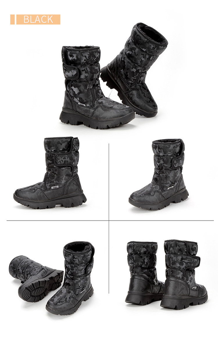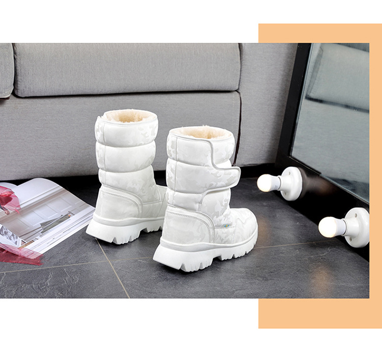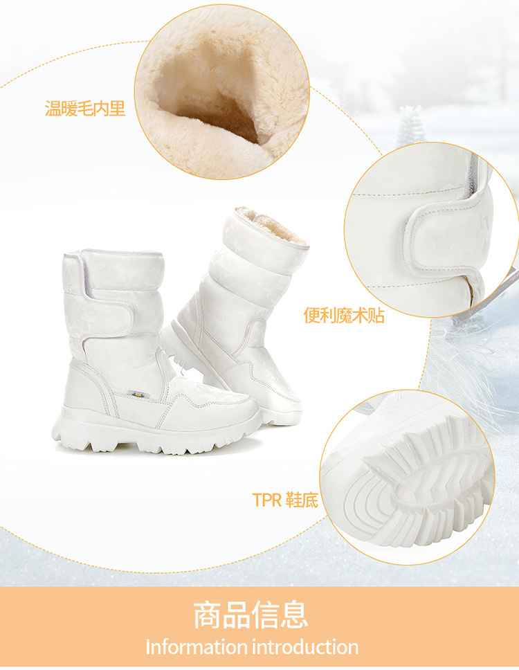부모-자식 소년과 소녀 흰 스노우 부츠 간단한 위장 스키 여행 패딩 방수 미끄럼 방지 크로스 국경 머리카락스토어 가기