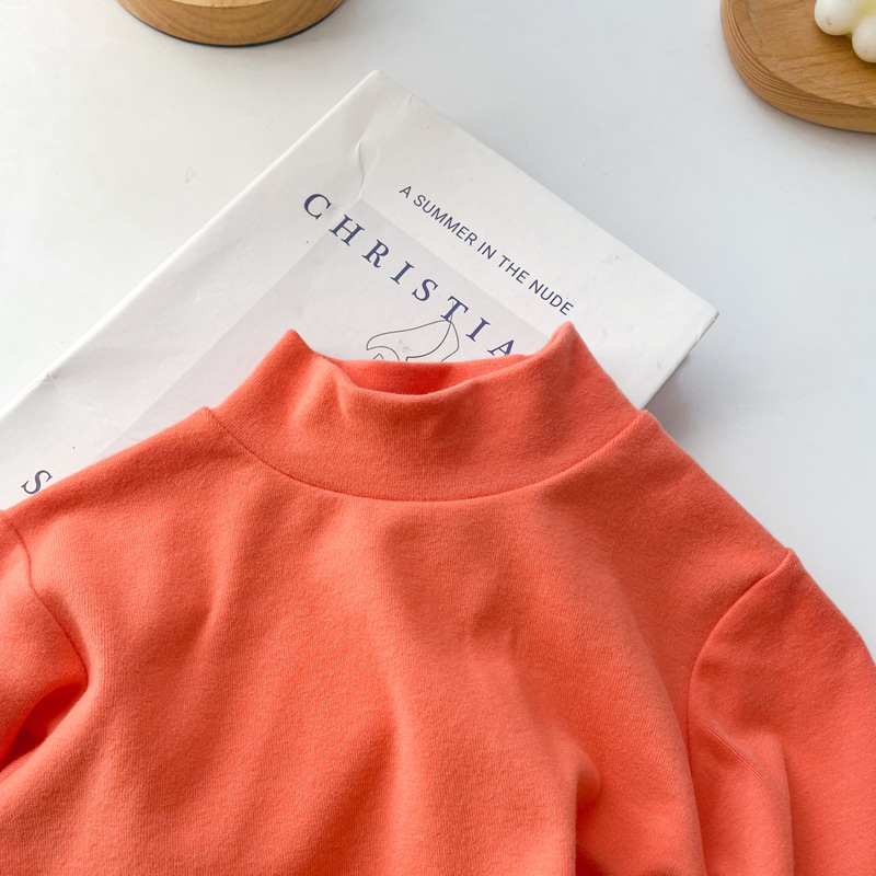 2025 아동용 하이넥 이너웨어 남아용 단색 아기용 신축성 울 레이어드 여아용 중간 목 티셔츠 상의